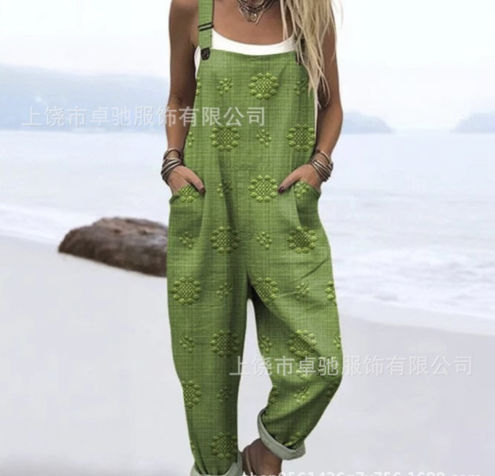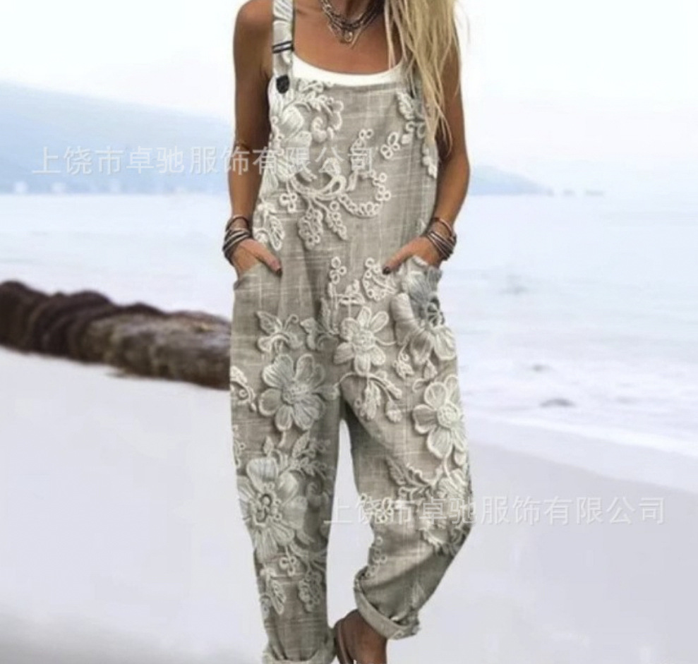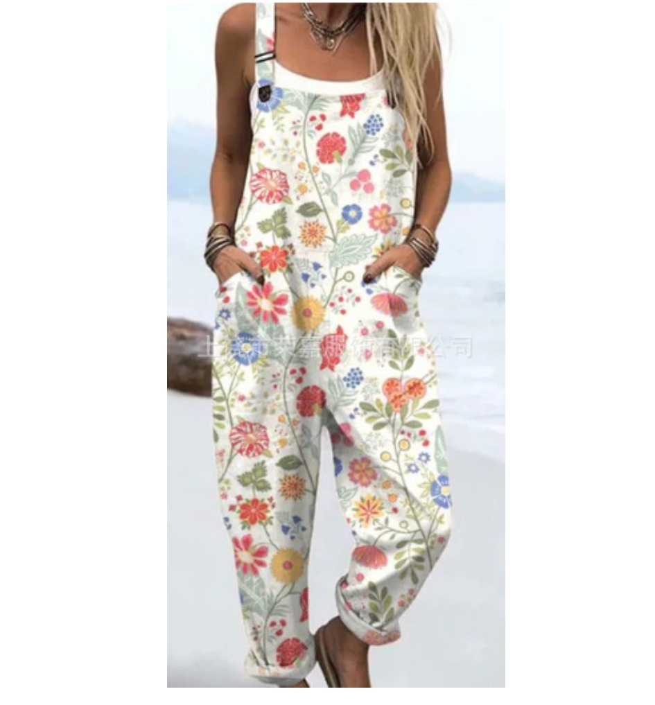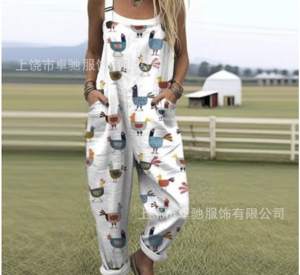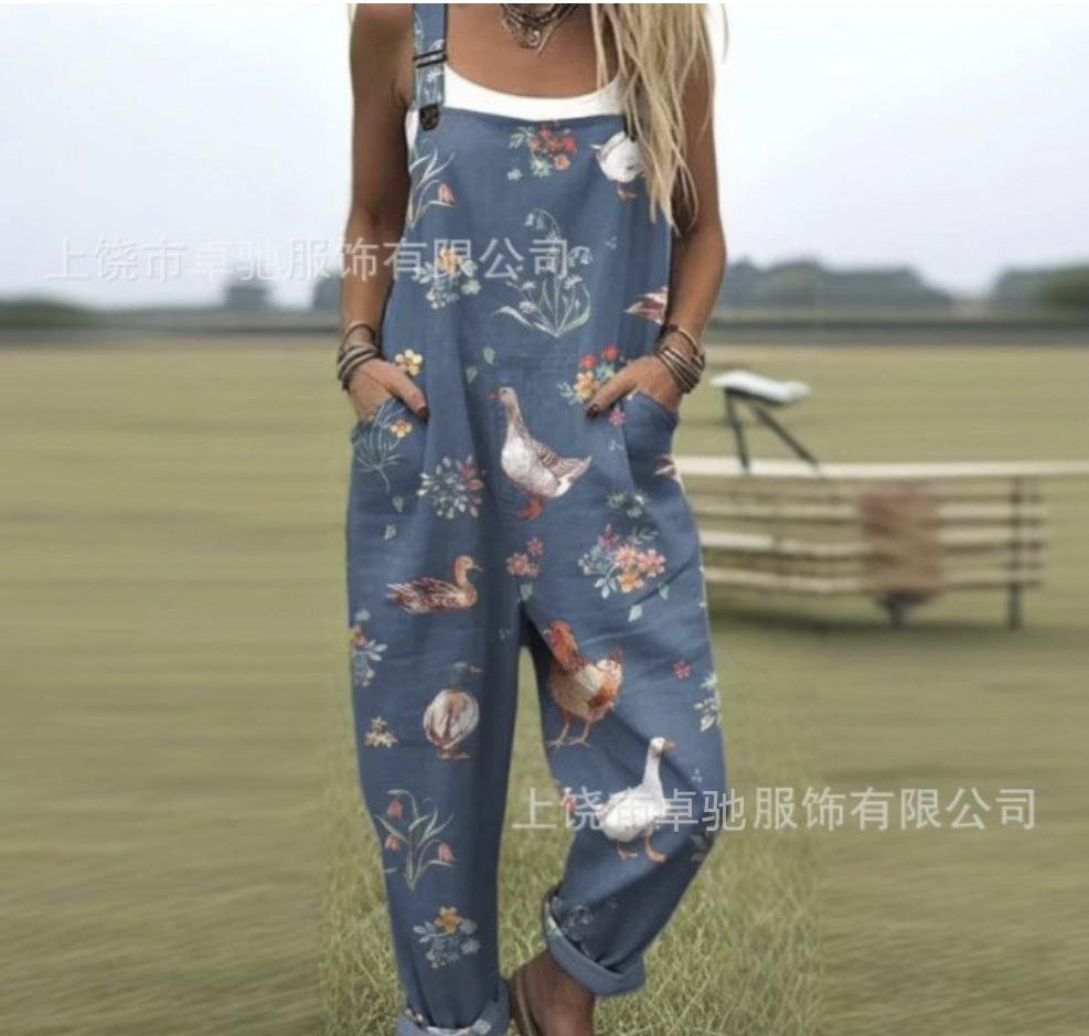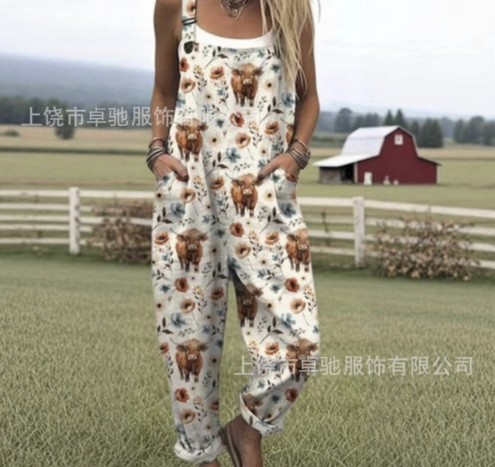 2025 новая женская одежда для трансграничных продаж Amazon, европейские и американские летние цифровые 3D-печатные подтяжки на пуговицах, повседневные брюки, подтяжки