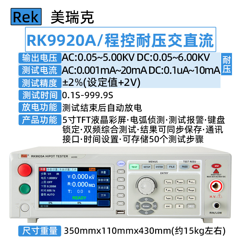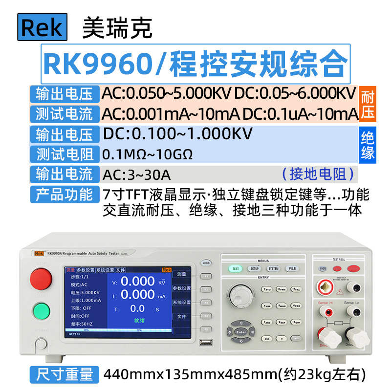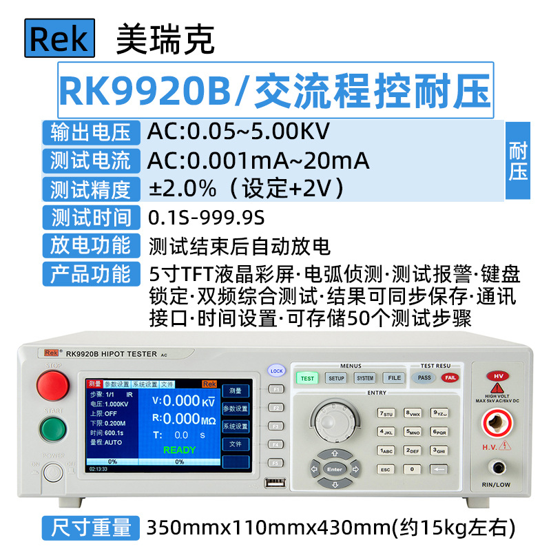 RK7110 Выдерживаемое напряжение переменного тока; RK7112 одно переменное выдерживаемое напряжение + изоляция; RK7120 Выдерживаемое напряжение переменного и постоянного тока; RK7122 AC и DC выдерживаемое напряжение + изоляция; RK9910 AC и DC выдерживаемое напряжение + изоляция; RK9910A Выдерживаемое напряжение переменного и постоянного тока; Выдерживаемое напряжение переменного тока RK9910B; RK9920 AC и DC выдерживаемое напряжение + изоляция; RK9920A Выдерживаемое напряжение переменного и постоянного тока; Выдерживаемое напряжение переменного тока RK9920B; Комплексный тестер RK9960 «три в одном»