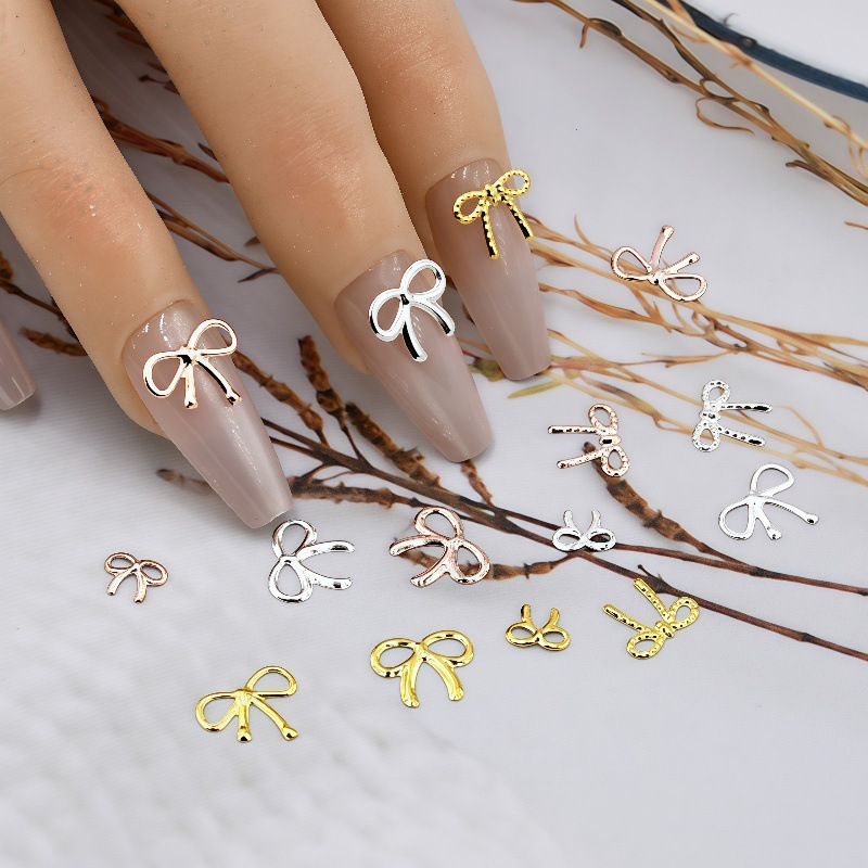 Новые металлические наклейки для маникюра с бантом, не выцветающие мини-наклейки для ногтей, аксессуары для самостоятельного изготовления, украшения для маникюра с бантом и лентой