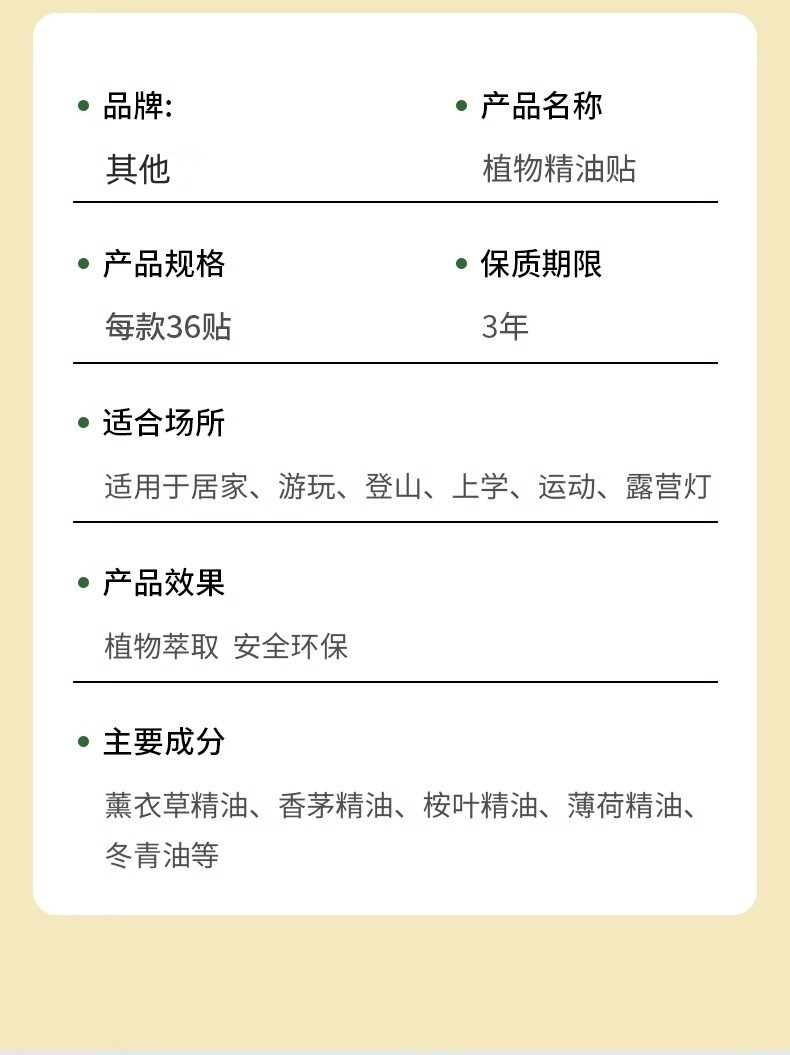 Пластырь с эфирным маслом*1【36 пластырей】; Наклейки с эфирными маслами*2【72 наклейки】; Наклейки с эфирными маслами*3【108 наклеек】; Наклейки с эфирными маслами*4【144 наклейки】