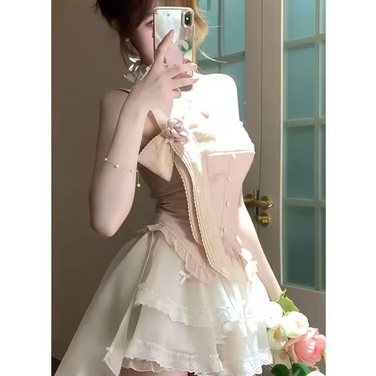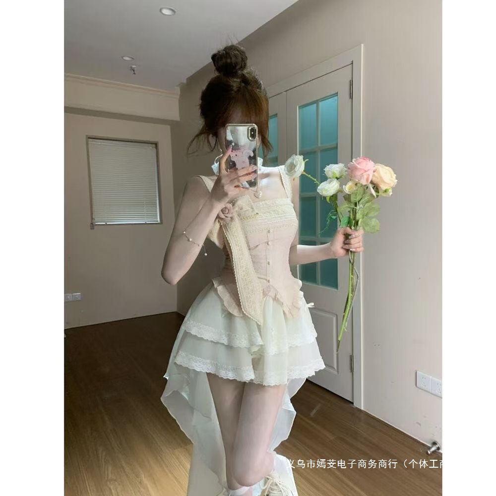 Новый летний комплект Pure Desire Style Princess Niche Design Half Skirt White Moonlight Atmosphere из двух предметов.