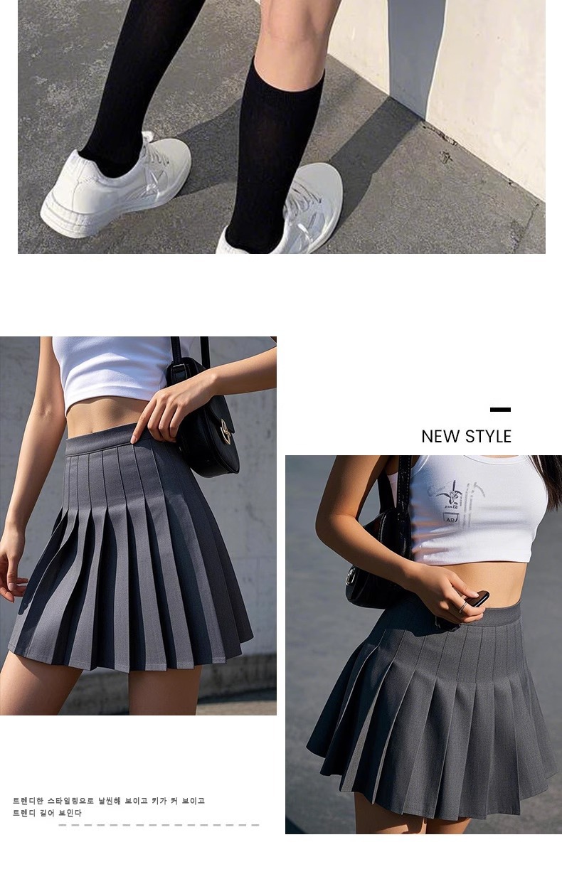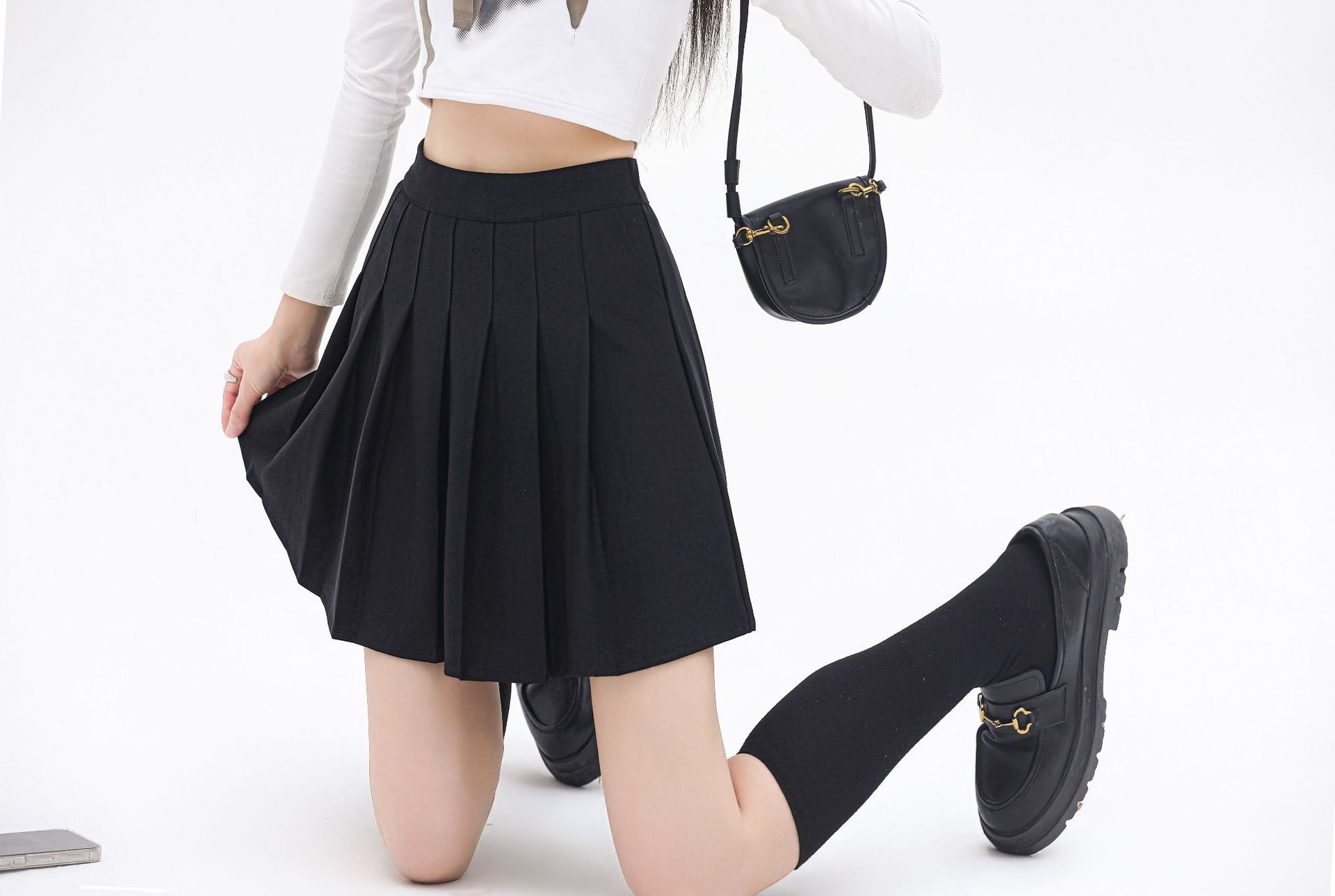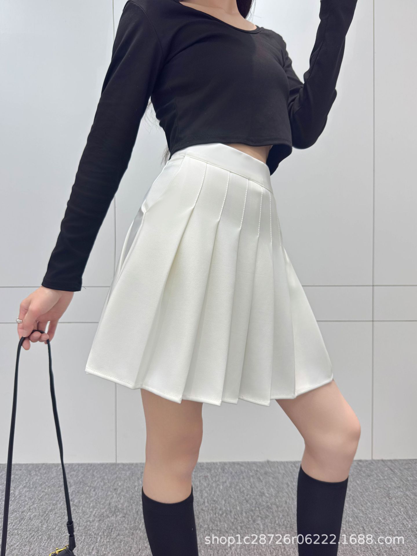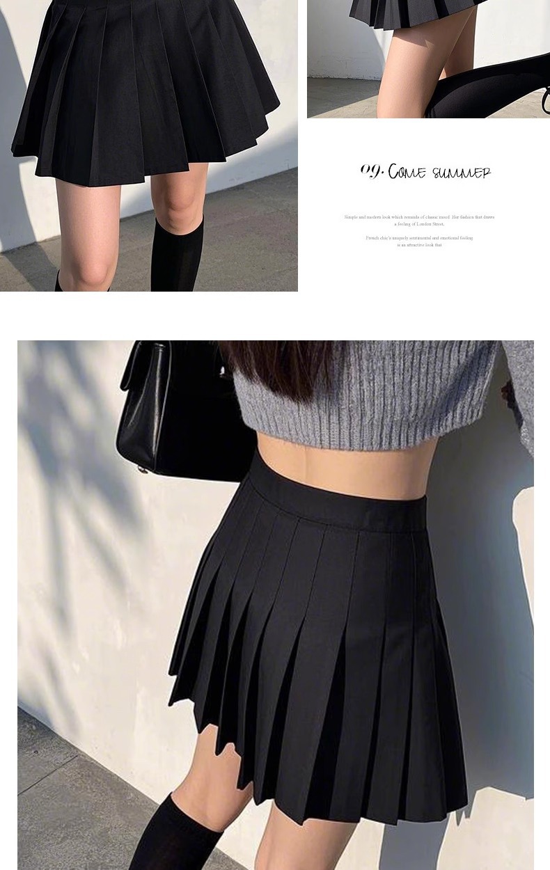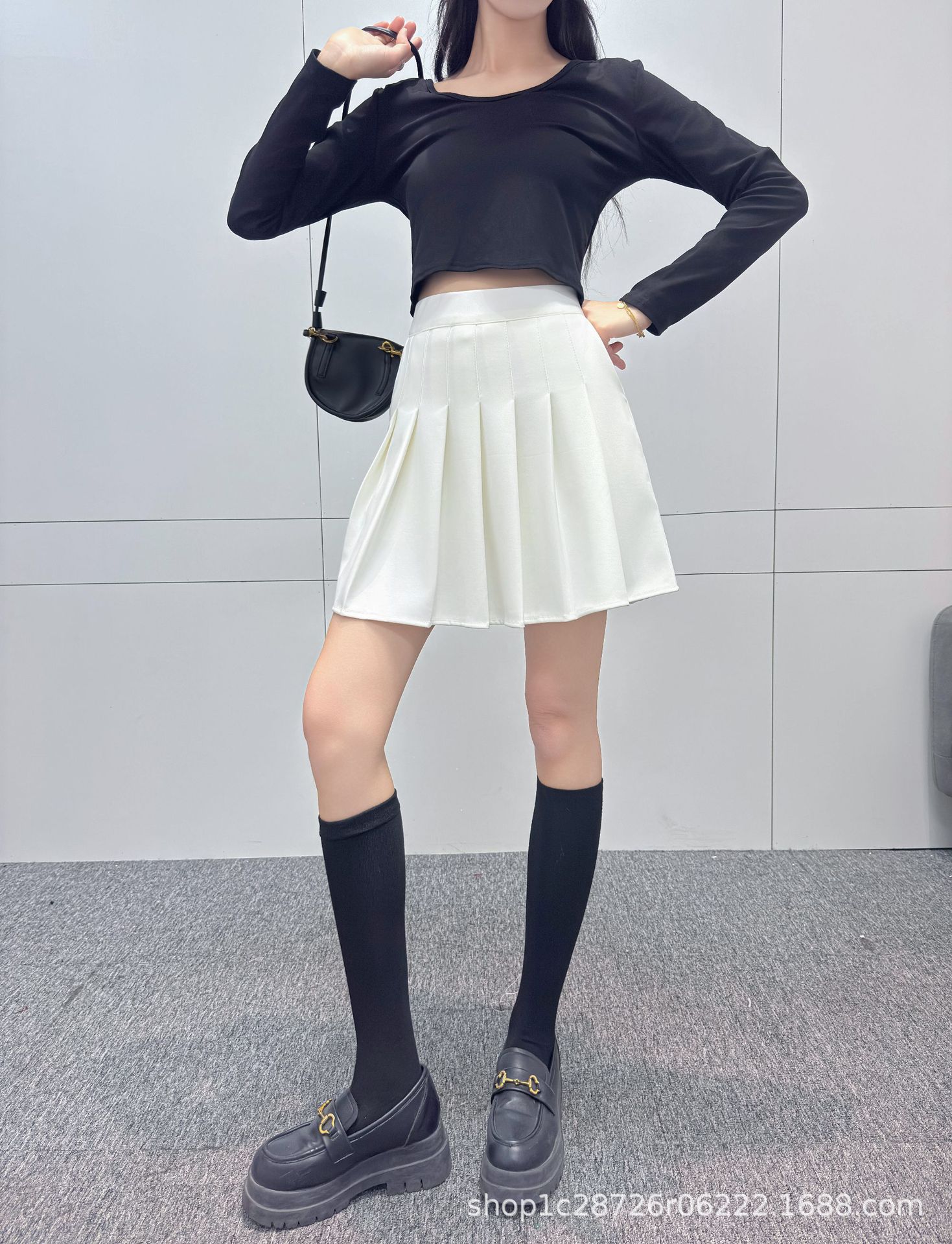 Эластичная плиссированная юбка с высокой талией для женщин, короткая утягивающая юбка А-силуэта для миниатюрных фигур, весенне-летняя однотонная плиссированная юбка с подкладкой, студенческий стиль.