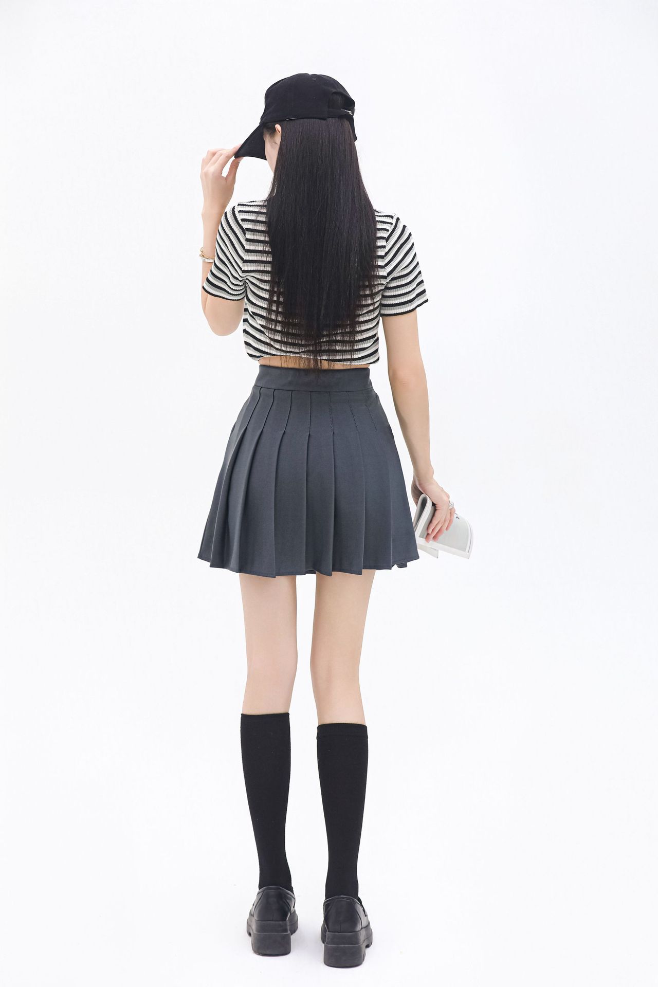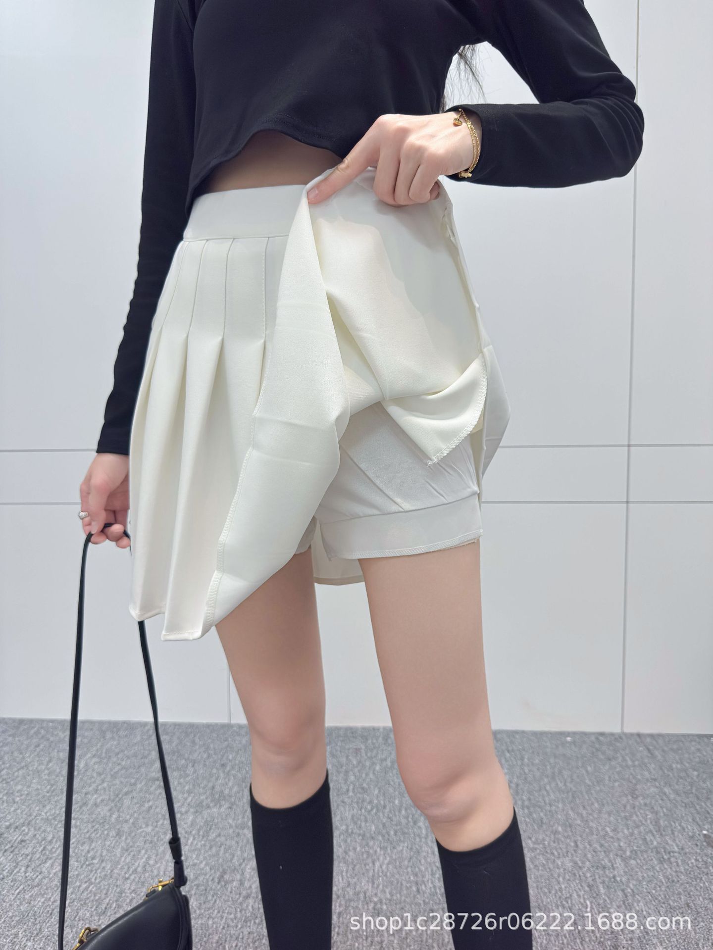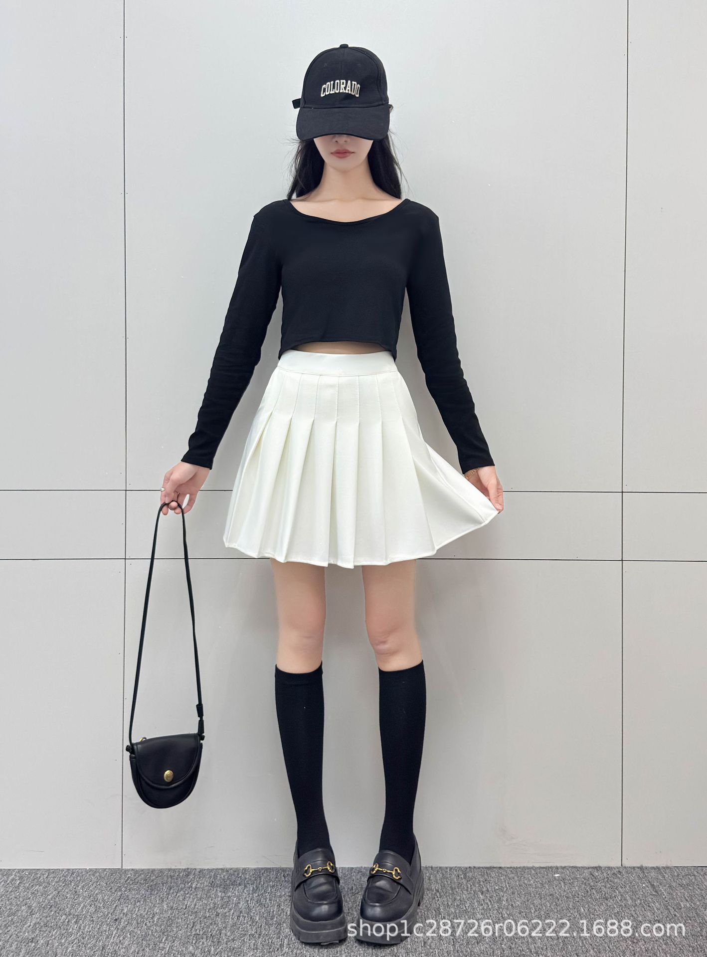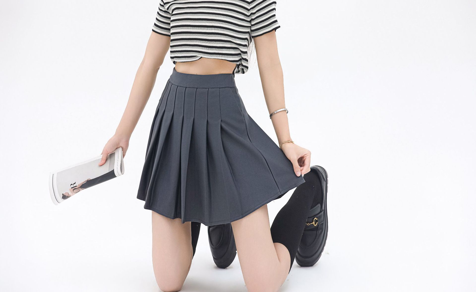 Эластичная плиссированная юбка с высокой талией для женщин, короткая утягивающая юбка А-силуэта для миниатюрных фигур, весенне-летняя однотонная плиссированная юбка с подкладкой, студенческий стиль.