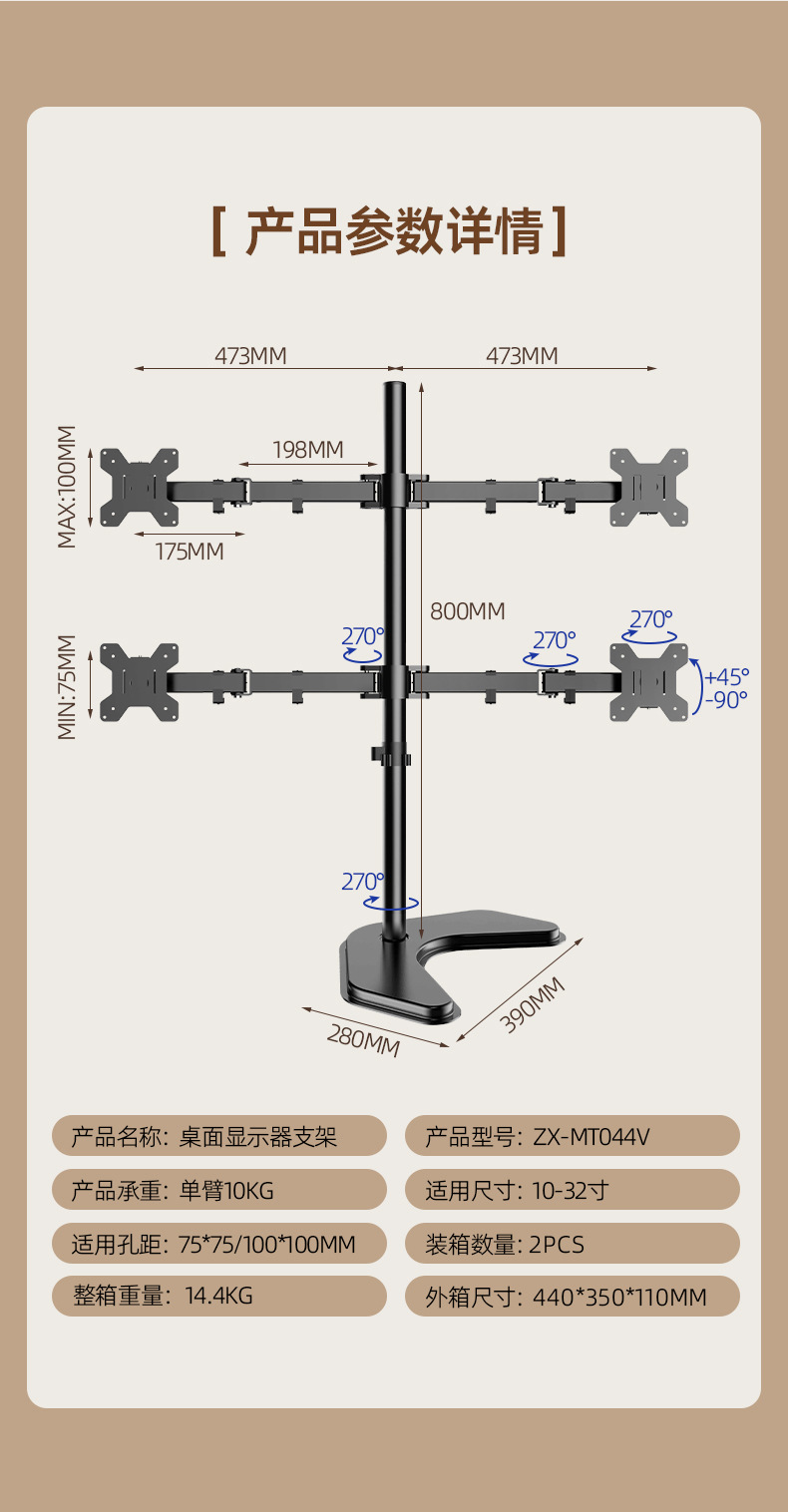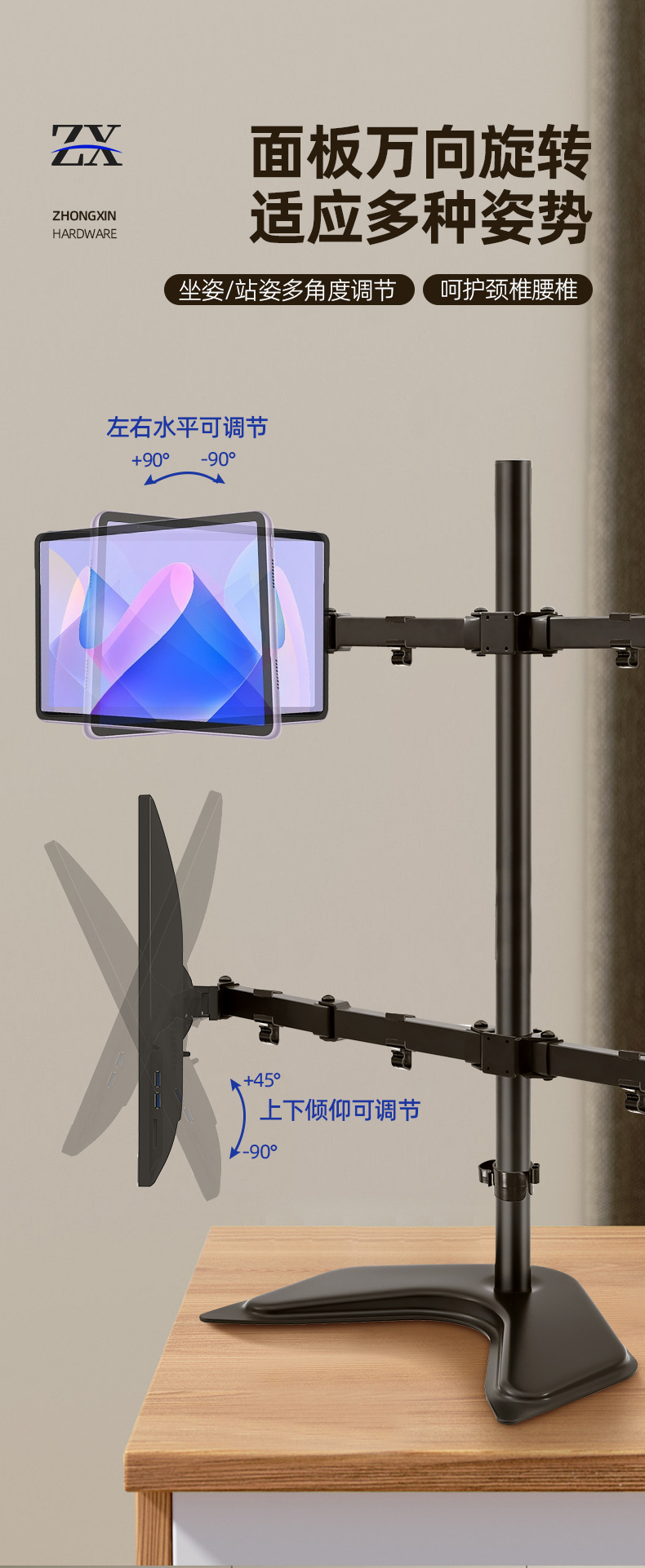 Верхние и нижние стойки для двойного экрана подходят для 13-36inch стойки для настольного компьютера и универсальных поворотных кронштейнов на рабочем столе.