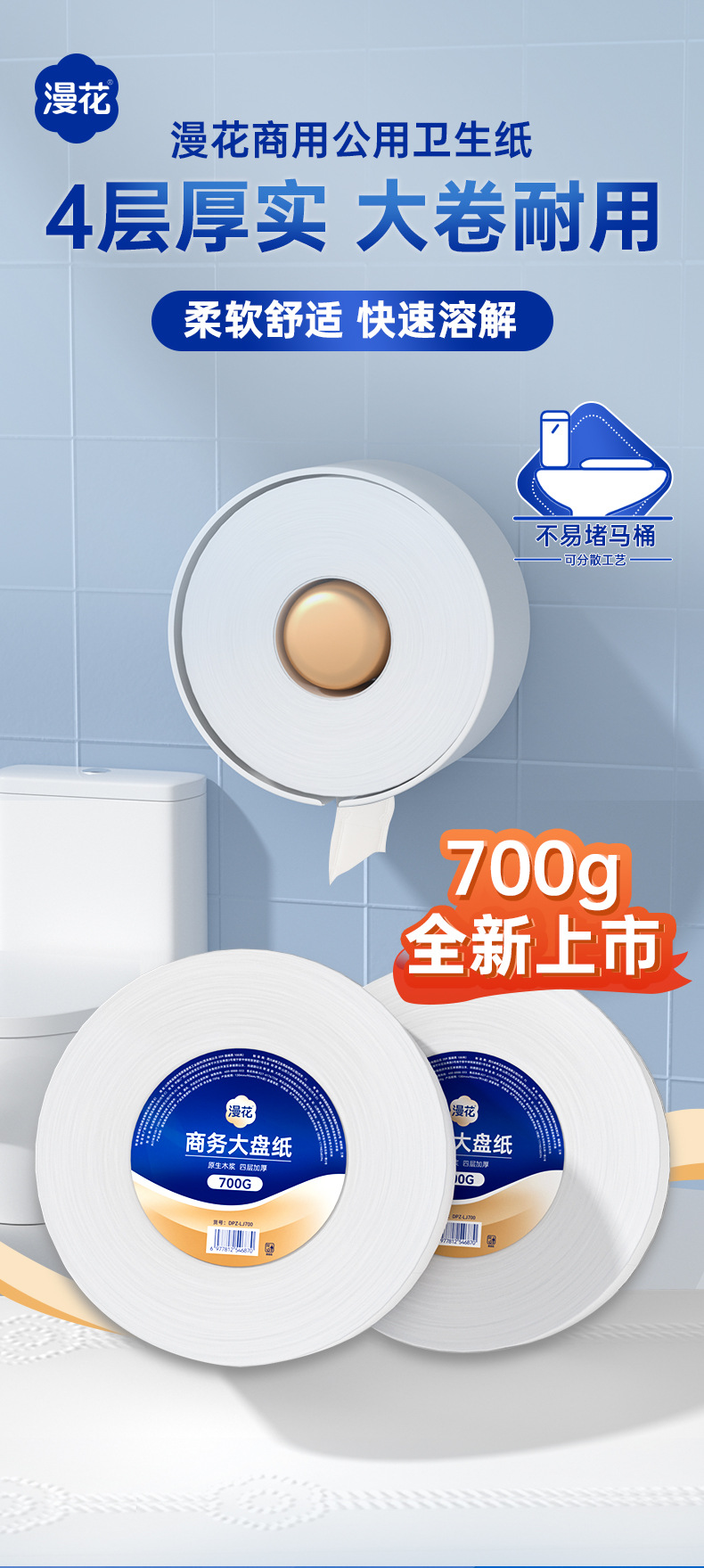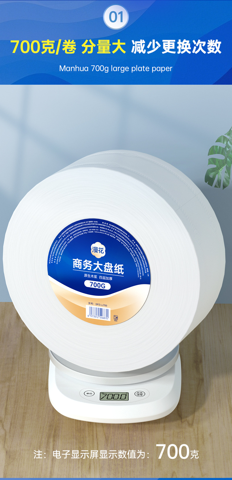 Коммерческая большая рулонная бумага 700 г, туалетная бумага для гостиничных ванных комнат, оптовая продажа в целой коробке.