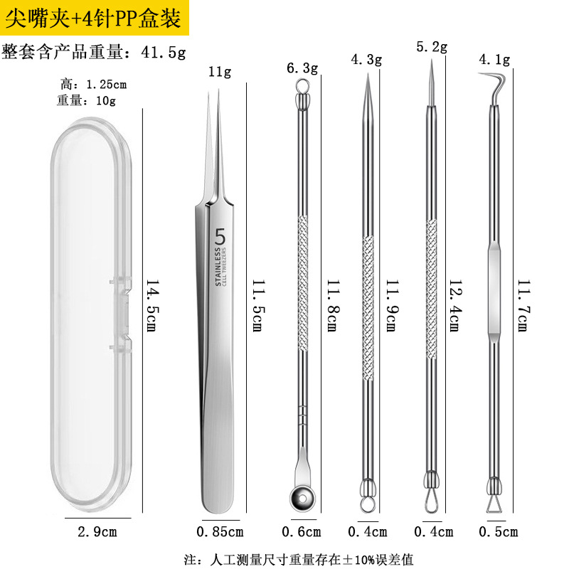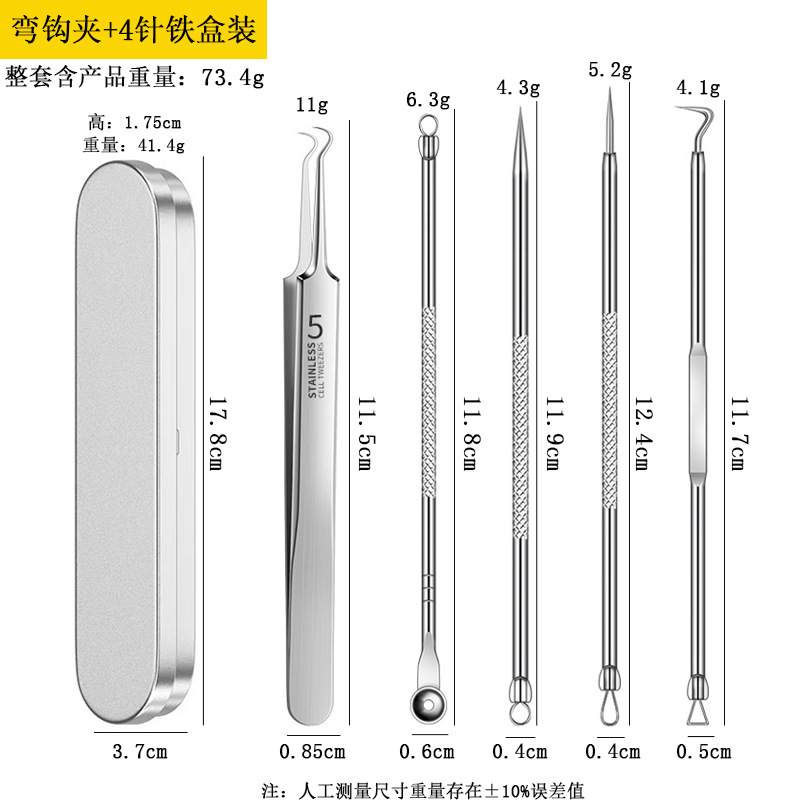 Набор для удаления акне из нержавеющей стали №5, игла для прыщей, игла для черных точек, пинцет для черных точек, игла для удаления акне.