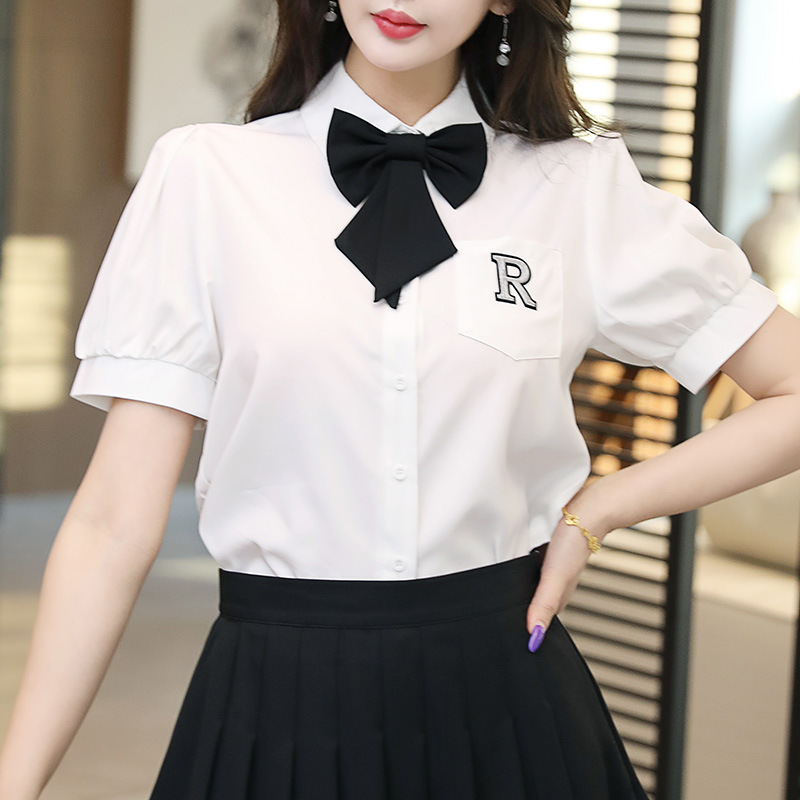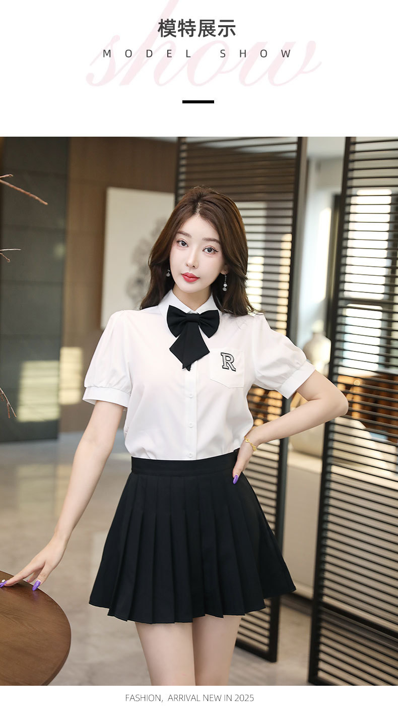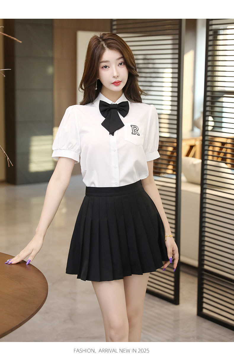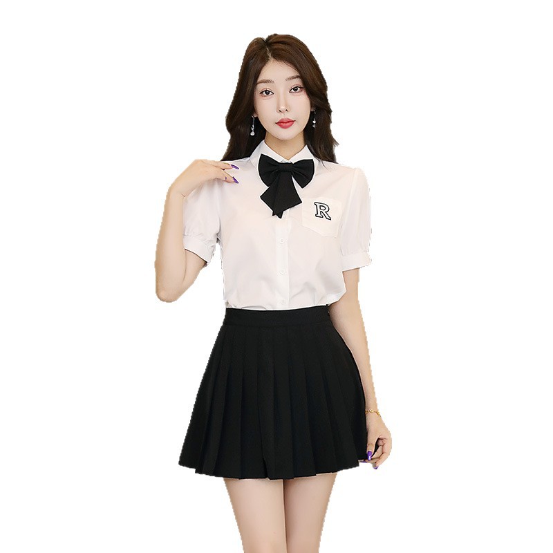Белый топ/черная юбка; Белый топ/темно-серая юбка; Белый топ (без галстука); темно-серая юбка; черная юбка