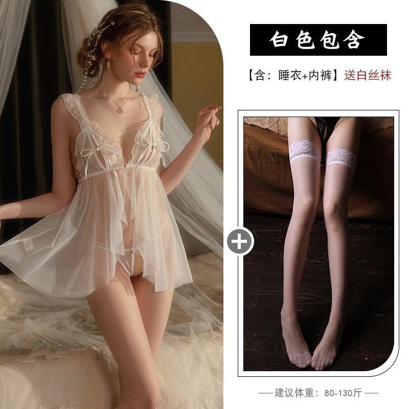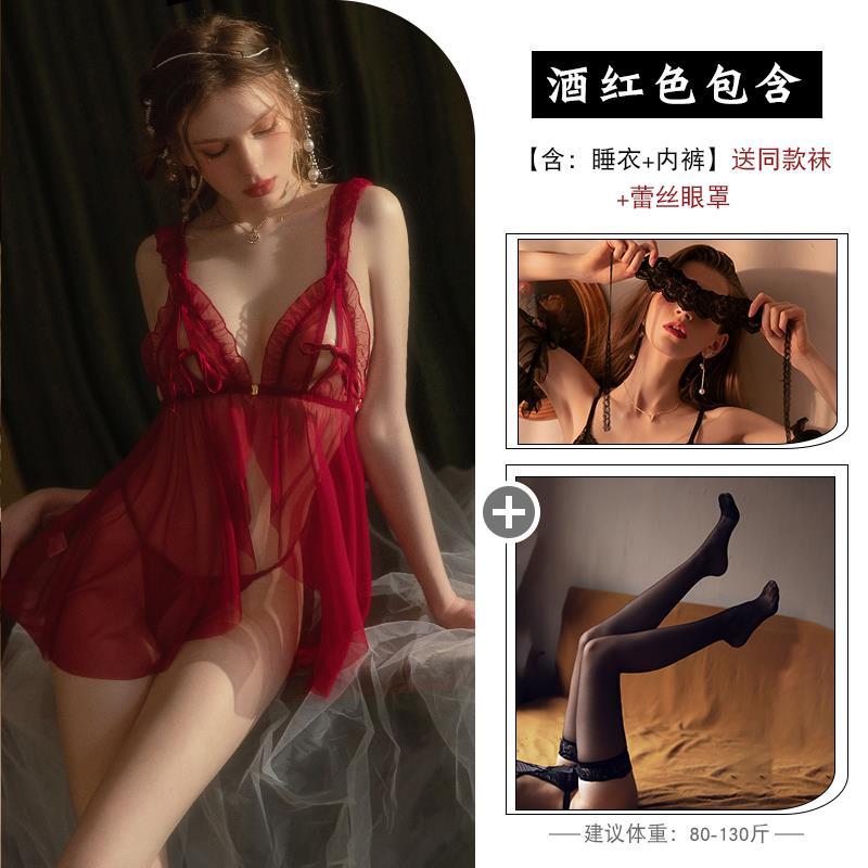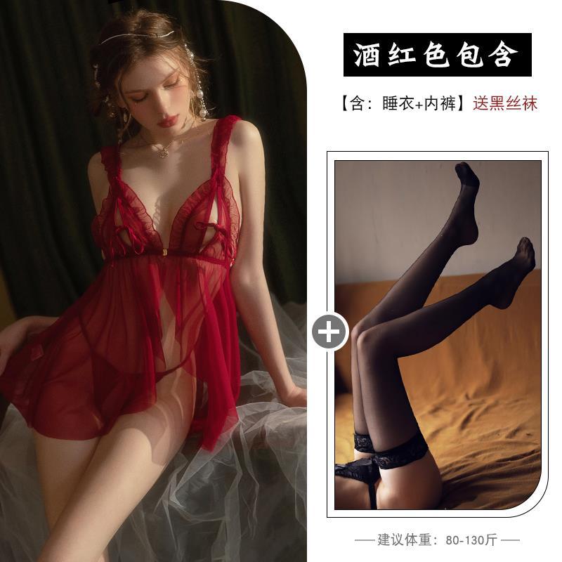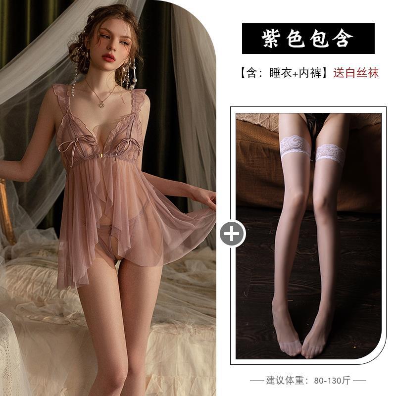 Сексуальная ночная рубашка для женщин, элитная, большого размера, кружевные подтяжки из ледяного шелка, тонкая ночная рубашка для пар, чистое искушение, соблазнительная пижама