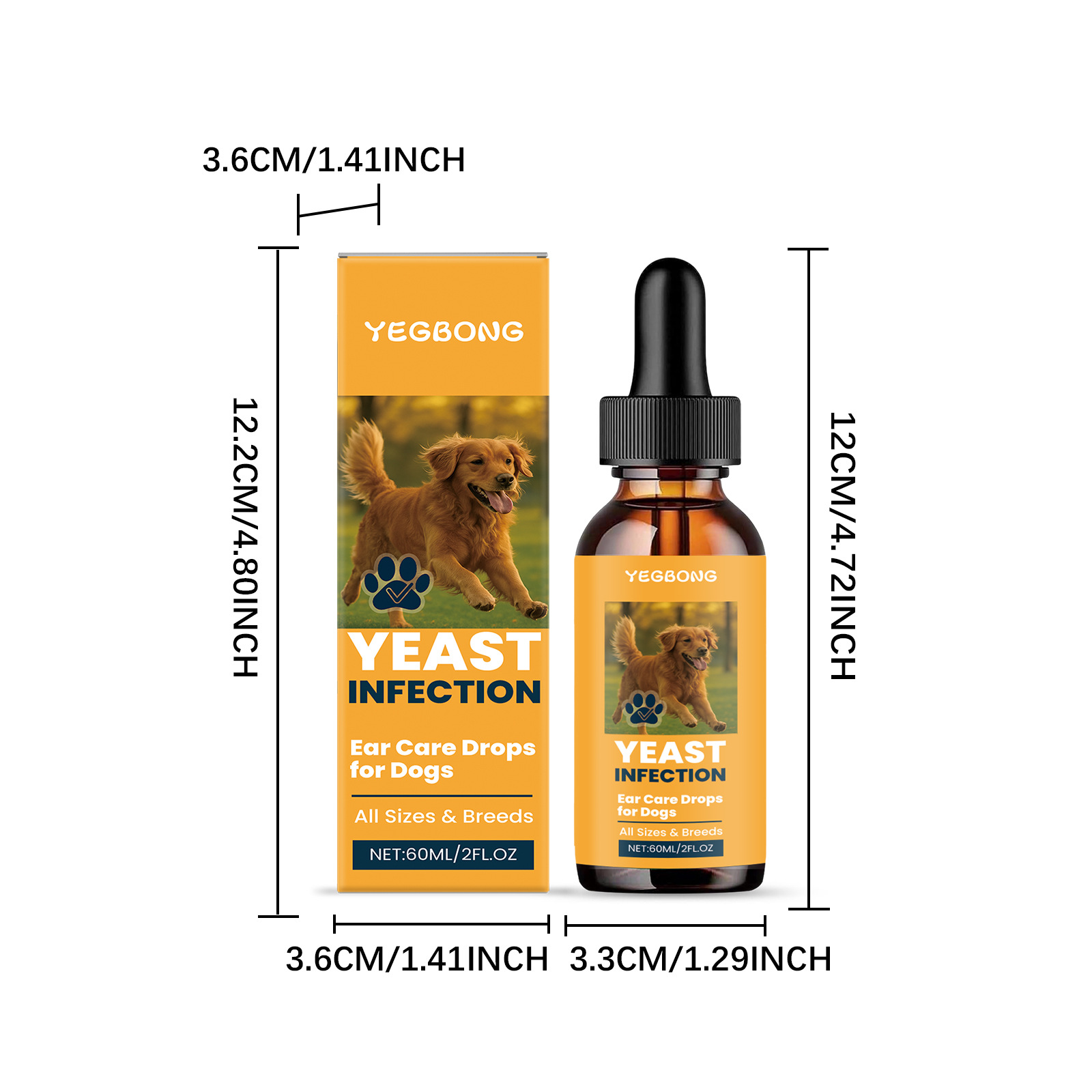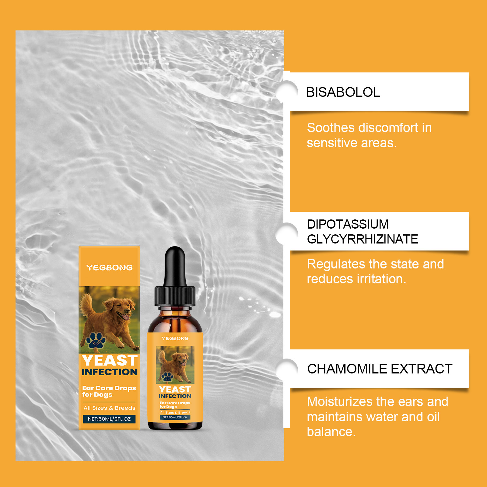 YEGBONG Капли для ухода за ушами для собак Ежедневный уход Мягкая формула очищает ушную серу, успокаивает зуд в ушах и запах ушей