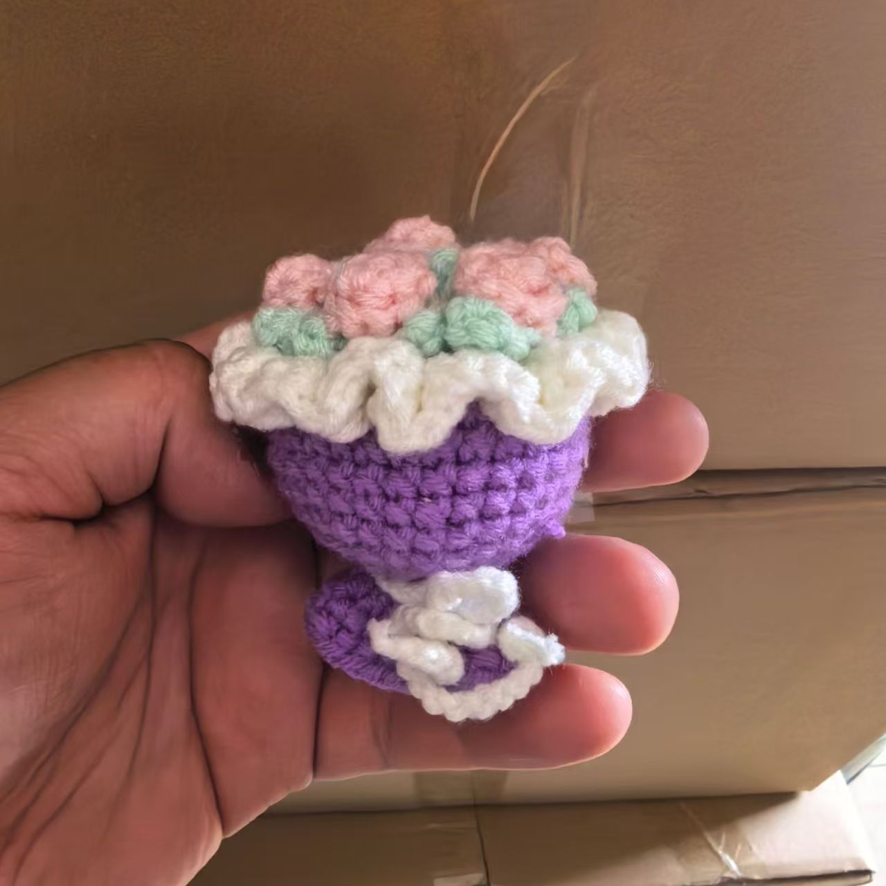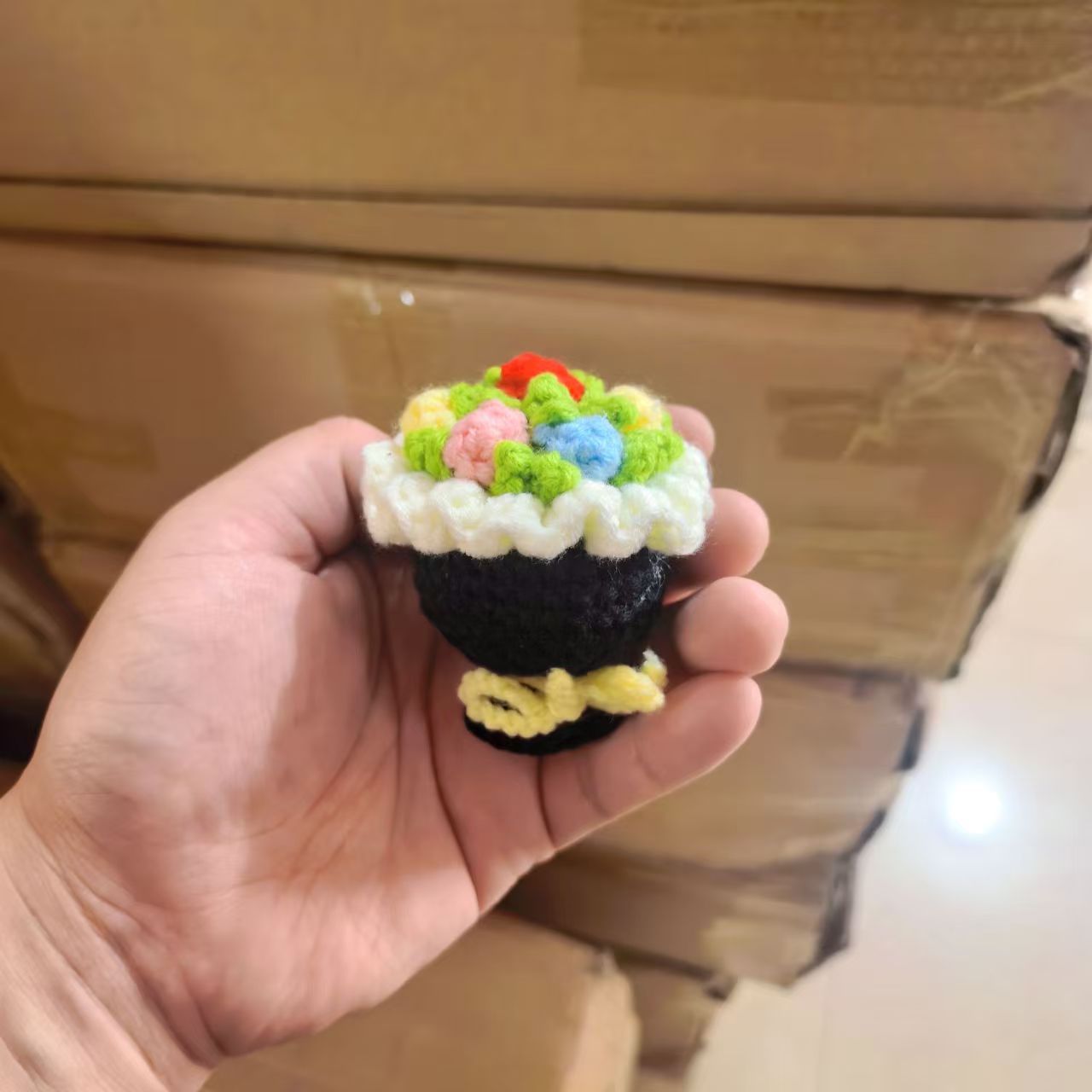 Вязаный крючком мини-букет из шерсти, роза, подарок на День учителя, выпускной, креативный подарок на день рождения