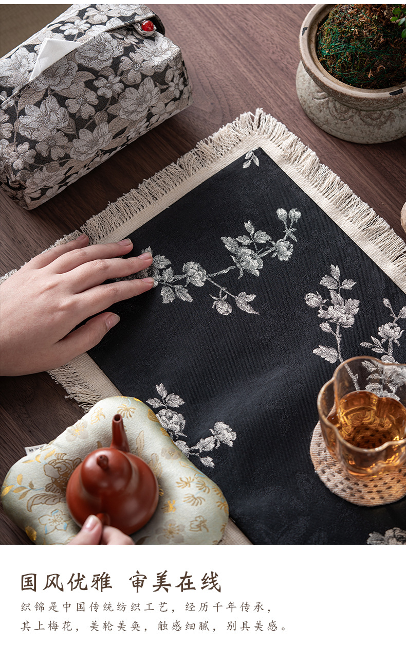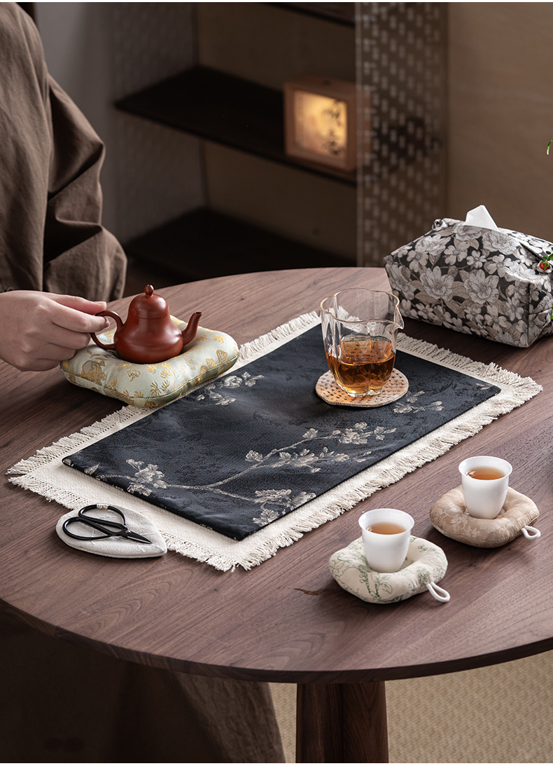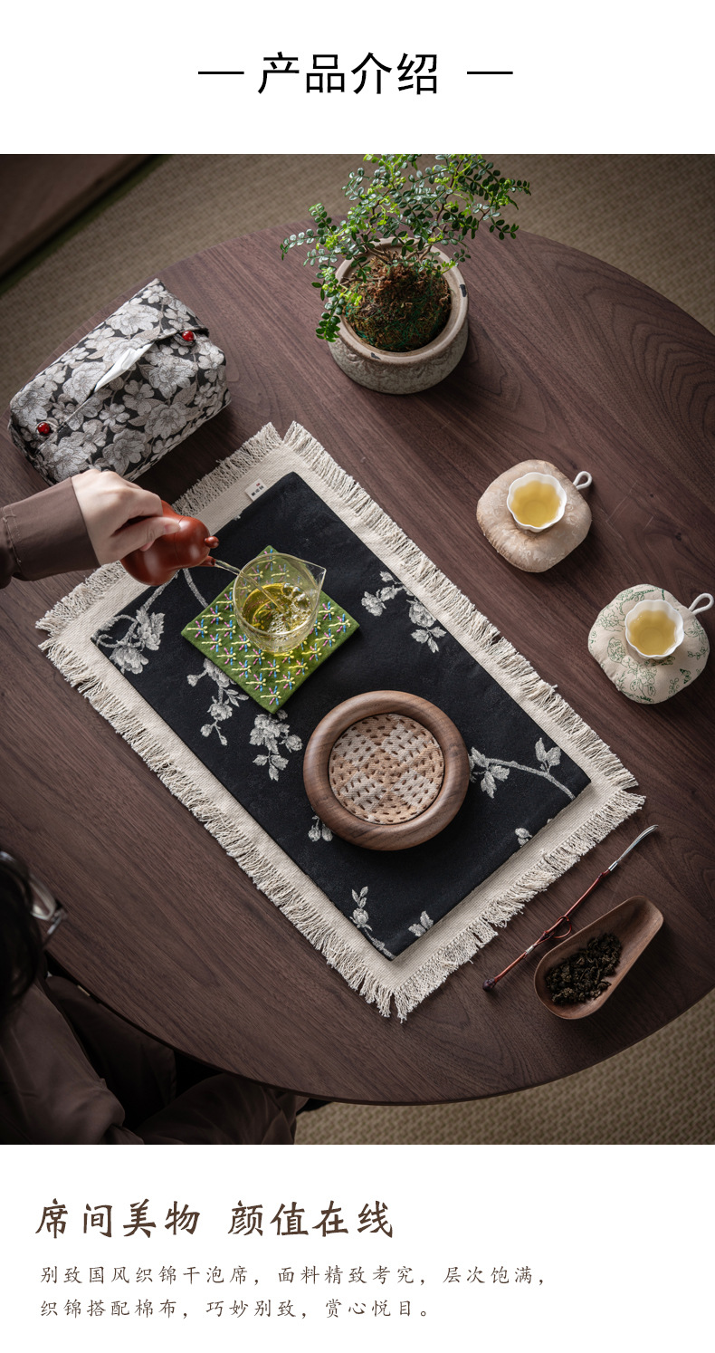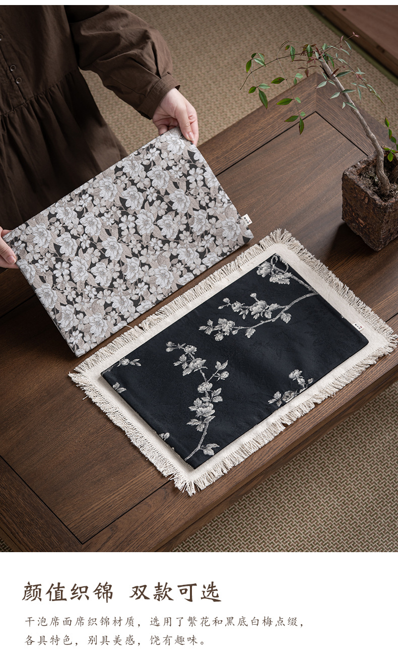 Коврик для чая из чистого хлопка; Бродячий коврик с сухими пузырьками-Bai Mei; Бродяжная сухая пузырьковая коврик-цветы; Бродяжный коврик с сухими пузырьками белая слива + коврик для чая по краям; Брокадный коврик с сухими пузырьками и цветами + коврик для чая по краям