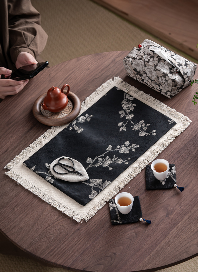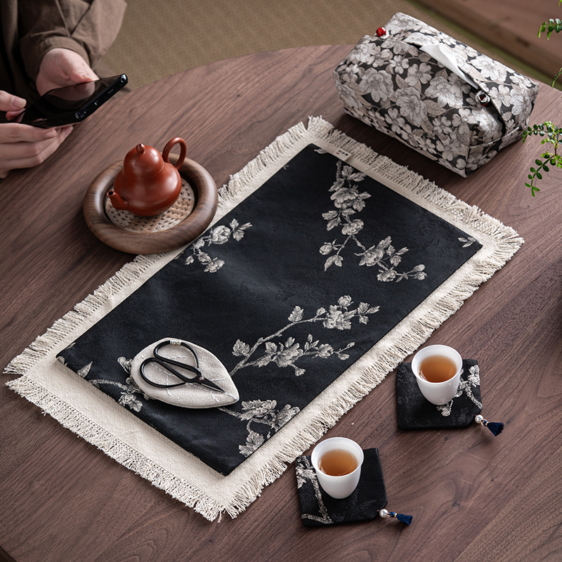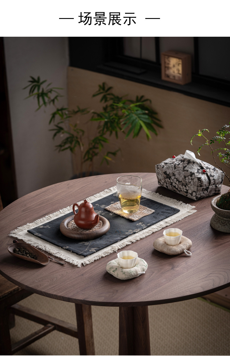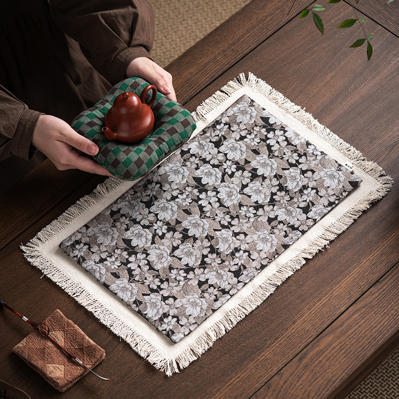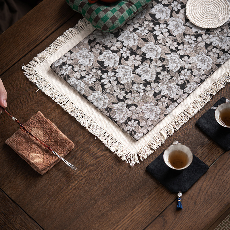 Чайный коврик из хлопка и льняного жаккарда, чайный коврик с кисточками ручной работы, простая и универсальная скатерть, сухой пузырчатый коврик, коврик для журнального столика, изолированный чайный коврик