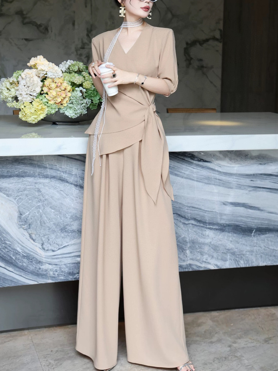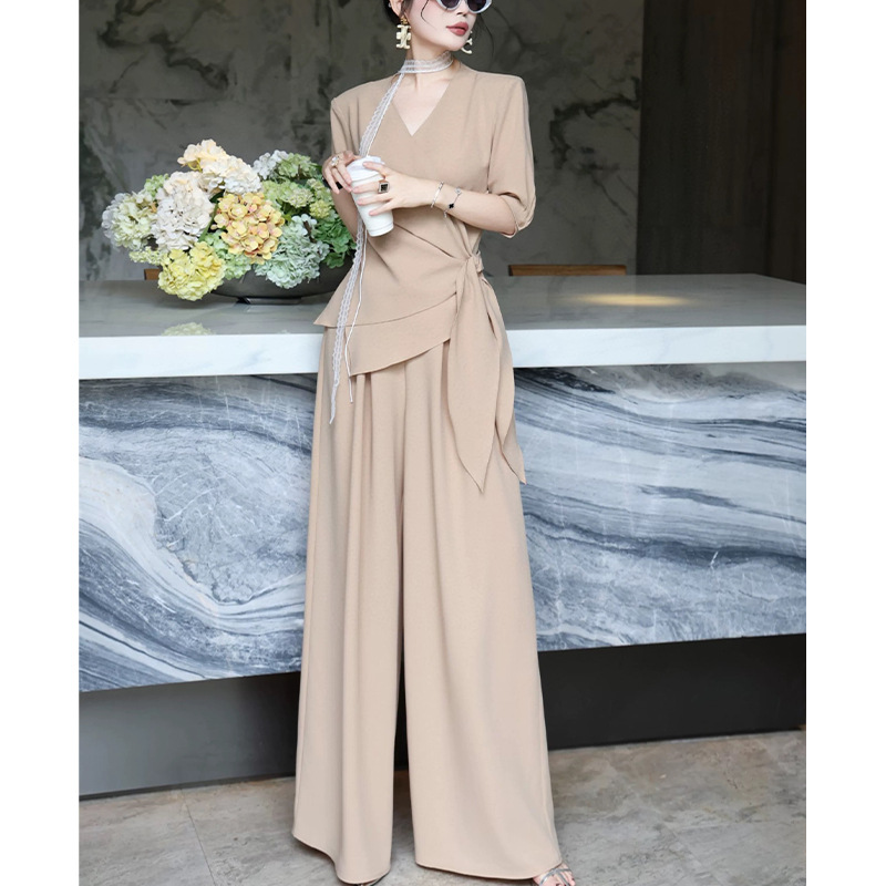 Большой размер женская летняя новая мода набор женский толстый мм нерегулярная талия с ремешками широкие брюки из двух частей 2590