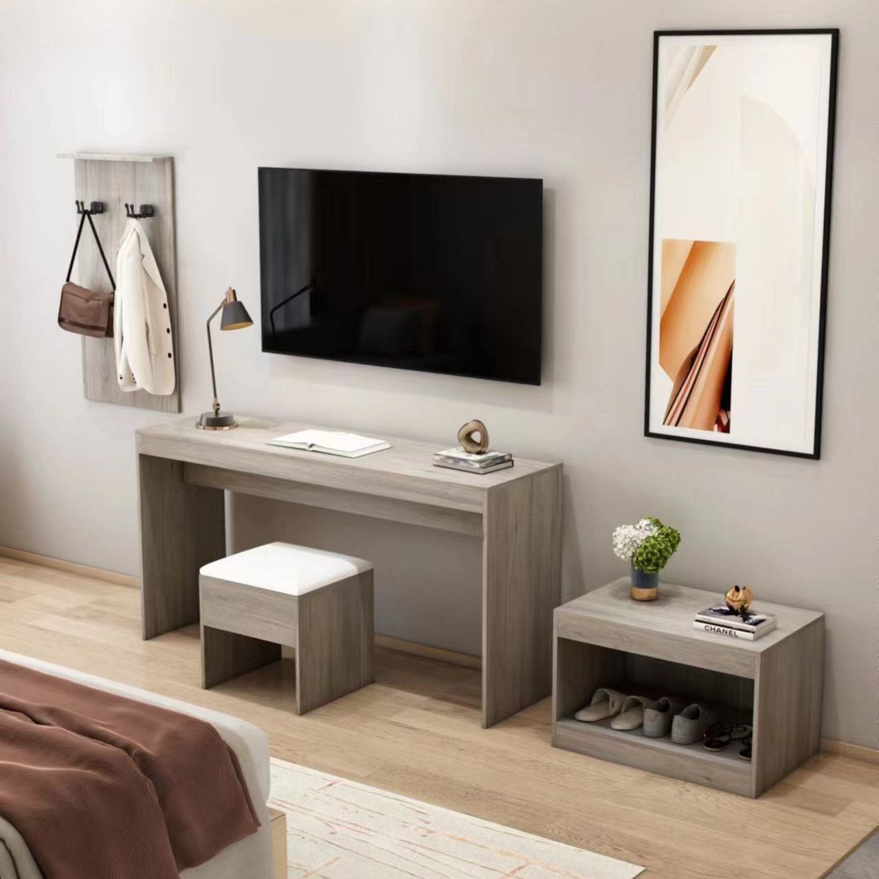 Современный минималистичный комбинированный стол для гостиничного шкафа для телевизора и шкафа для багажа для гостевых домов и таверн.