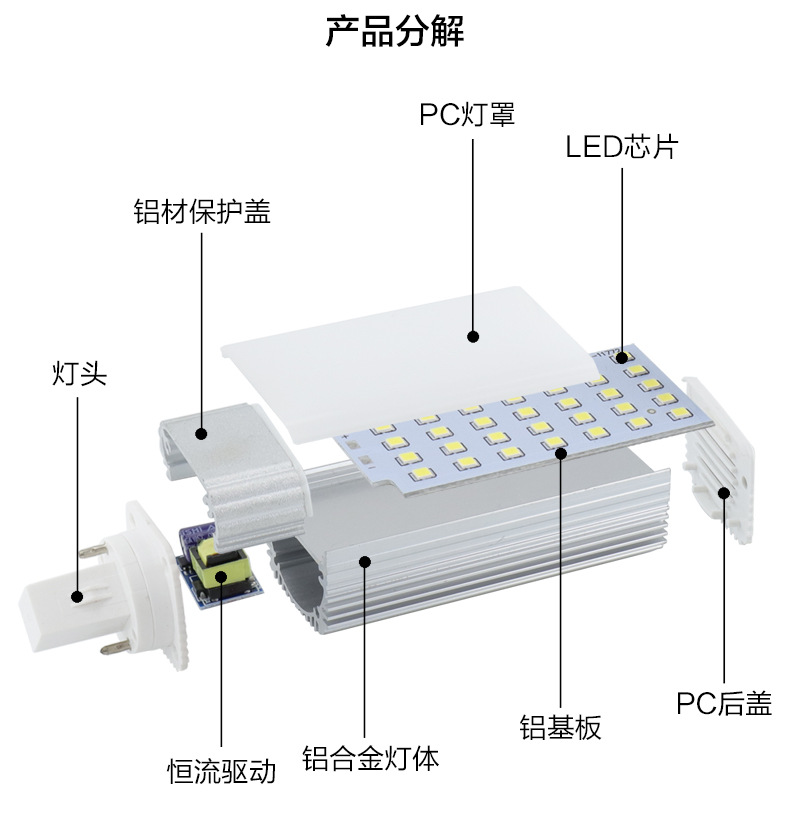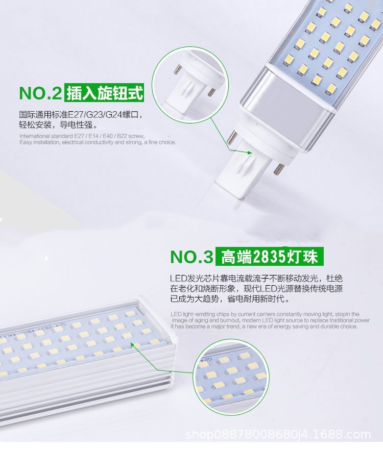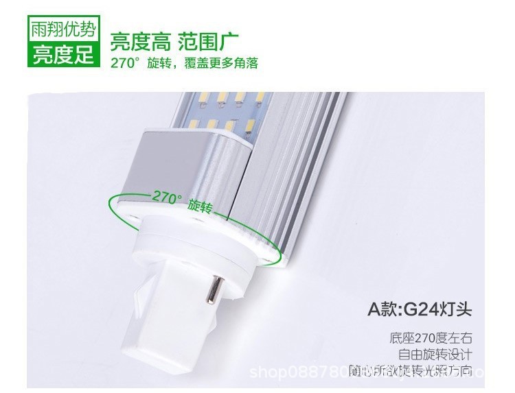 Светодиодная лампа высокой яркости из алюминиевого сплава, горизонтальная вставная лампа G24G23, вставная трубка 220 В, 110 В, защита глаз, винт E27, кукурузный пузырь
