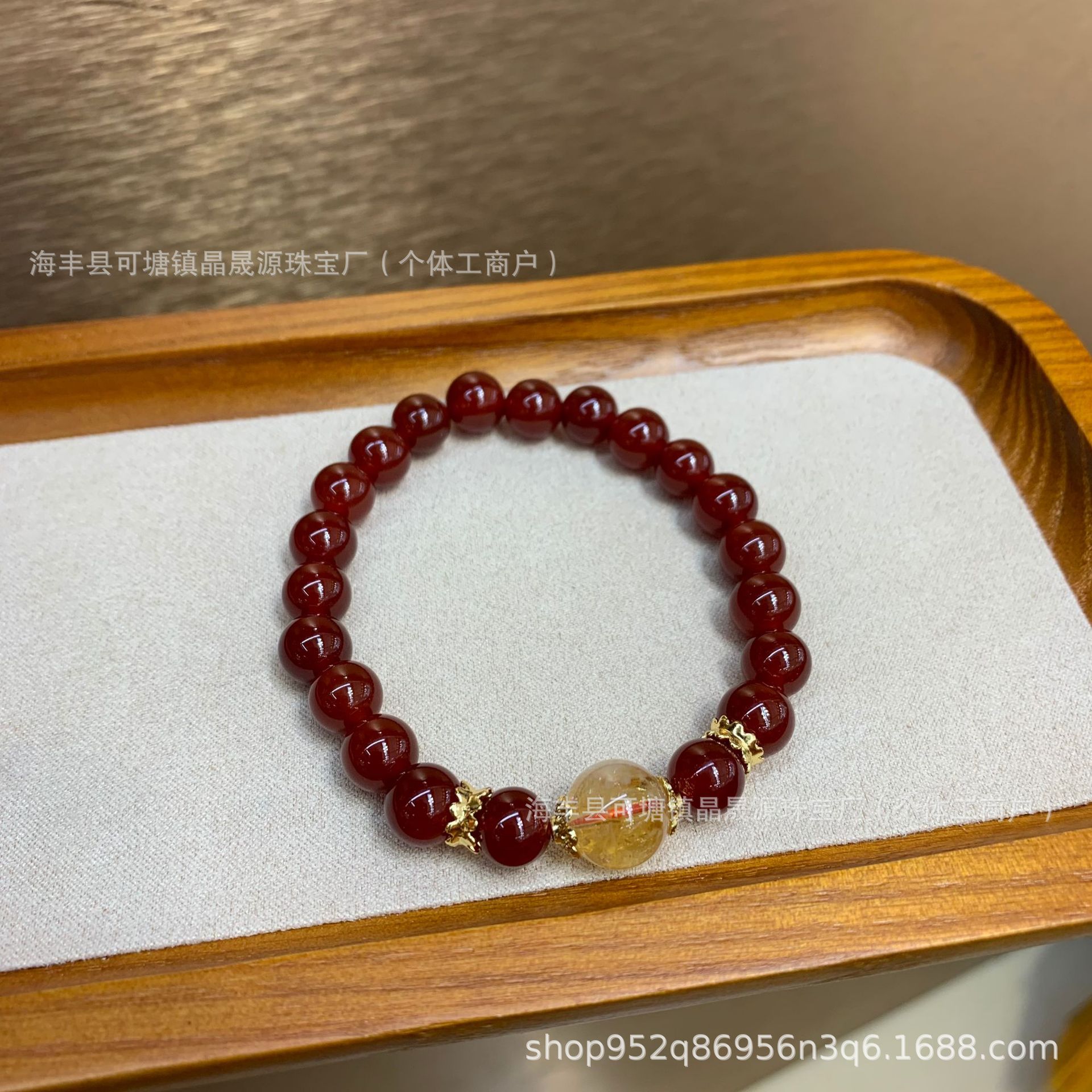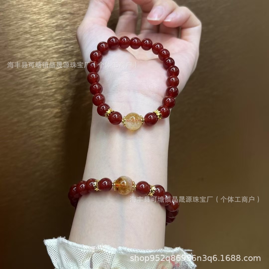 天然红玛瑙手串搭配黄塔晶黄水晶手链简约轻奢原创设计饰品批发款 批发量越大价格越低,可供直播间长期合作,欢迎来电私聊