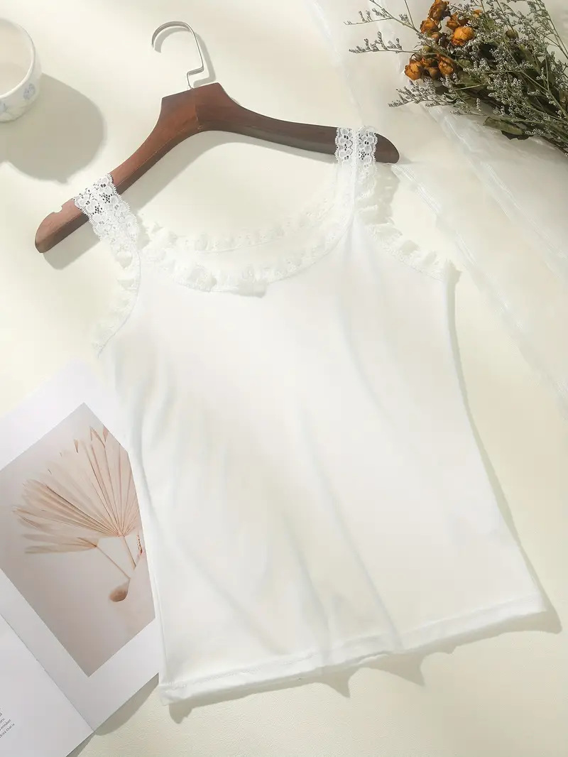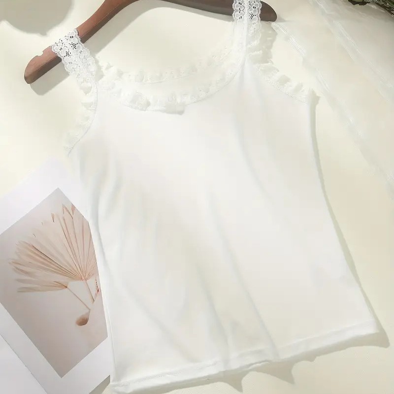 Модная кружевная майка для женщин, летняя высокоэластичная базовая рубашка больших размеров.