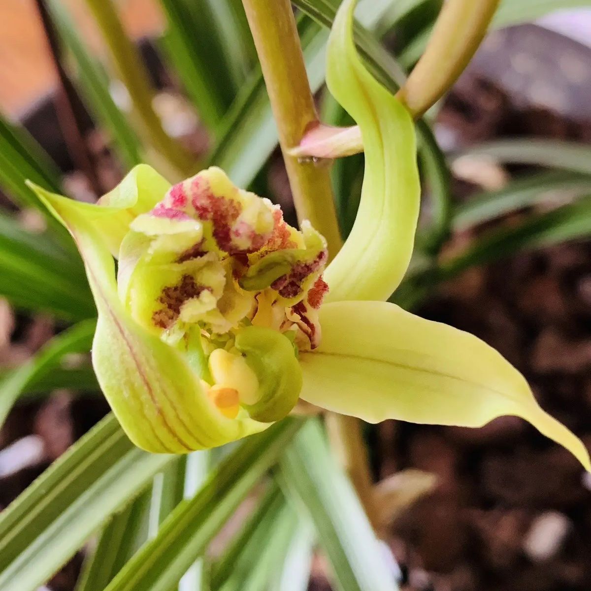 Юньнаньская орхидея с головой тигра, зеленое растение, бонсай, король тигров, краснохвостая чайка, зеленый дзен, маленькая голова тигра, коричневый корень, слоновая кость, белый, красивый в помещении и на открытом воздухе