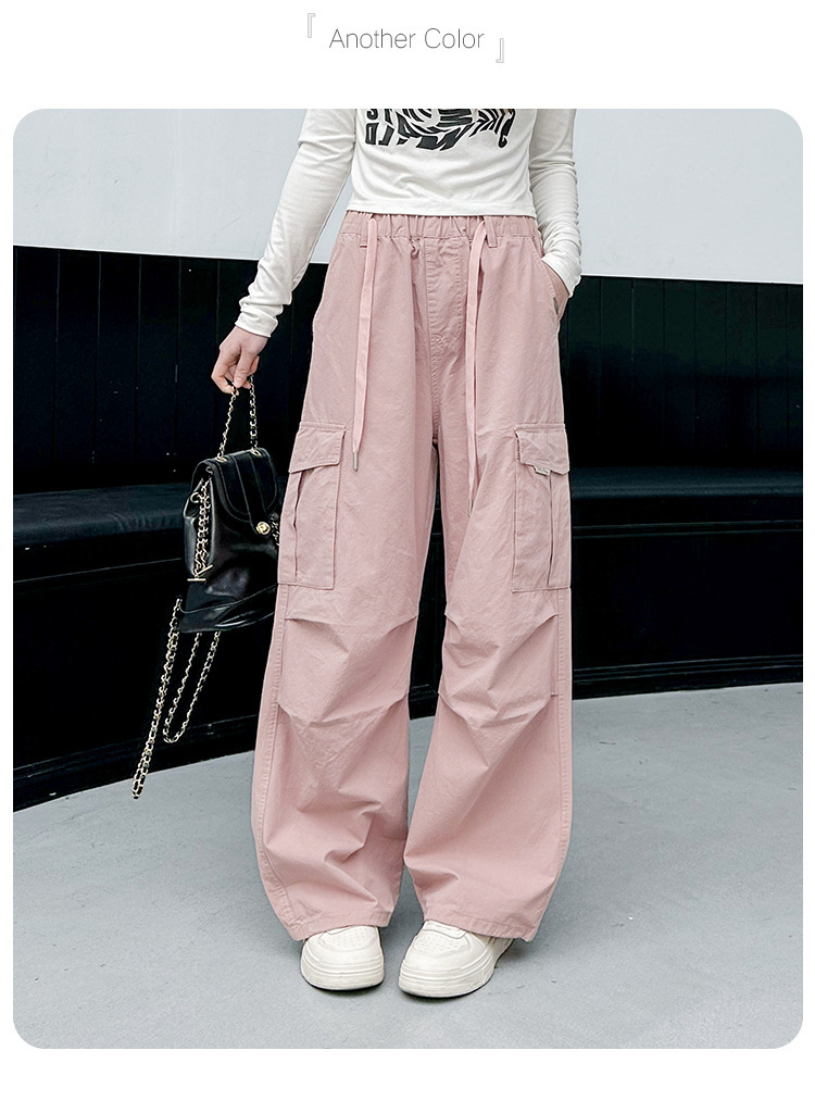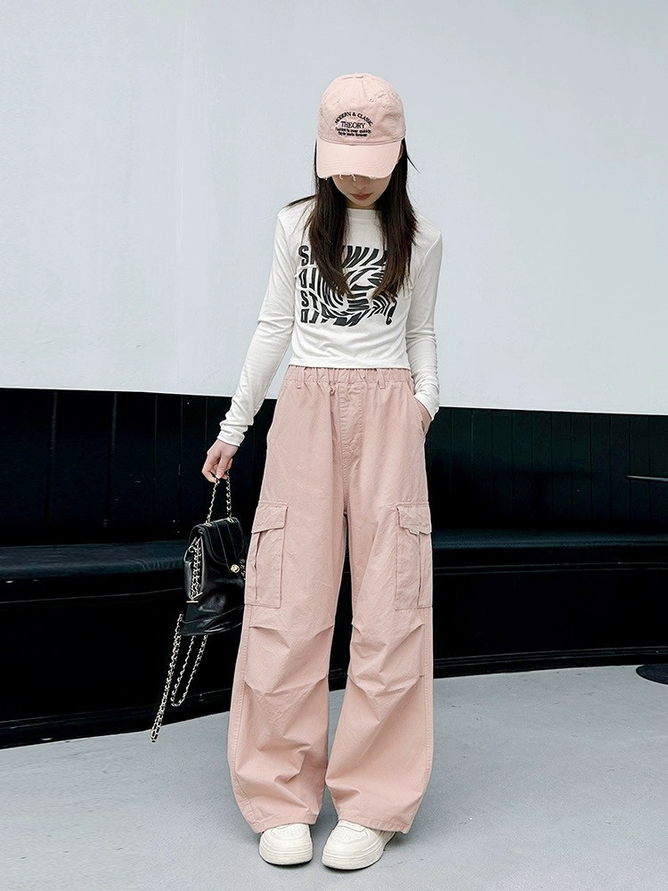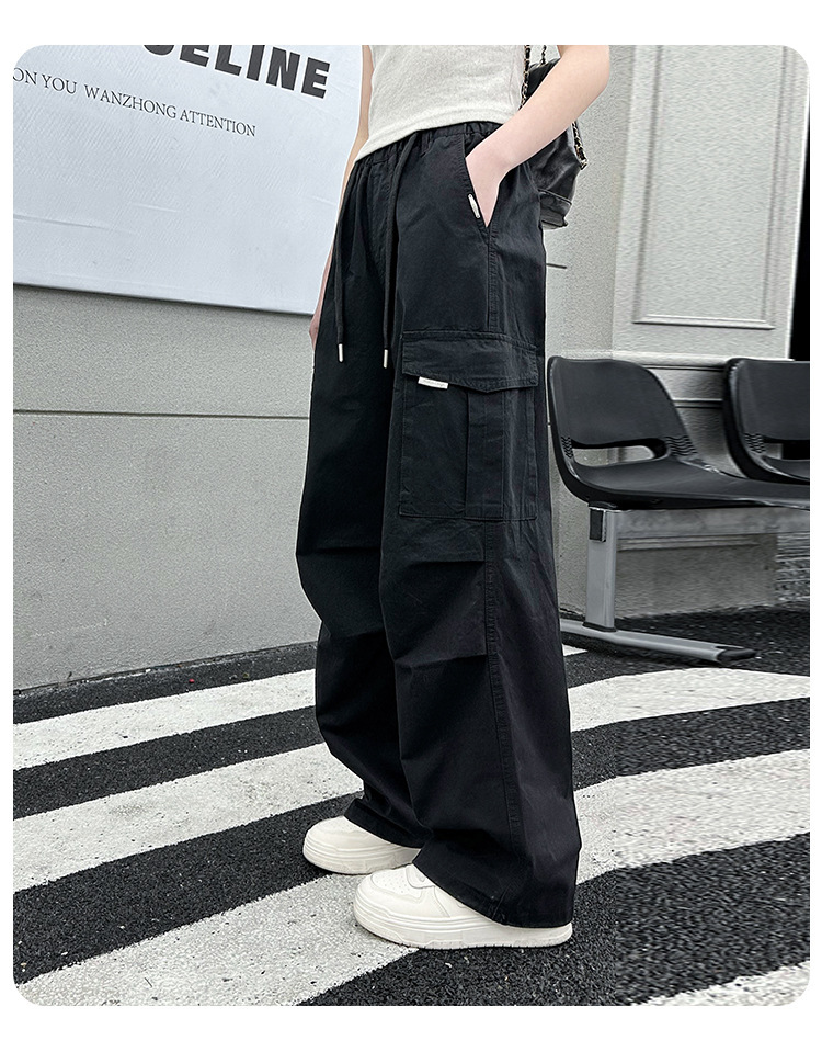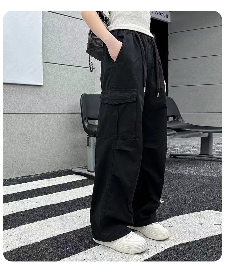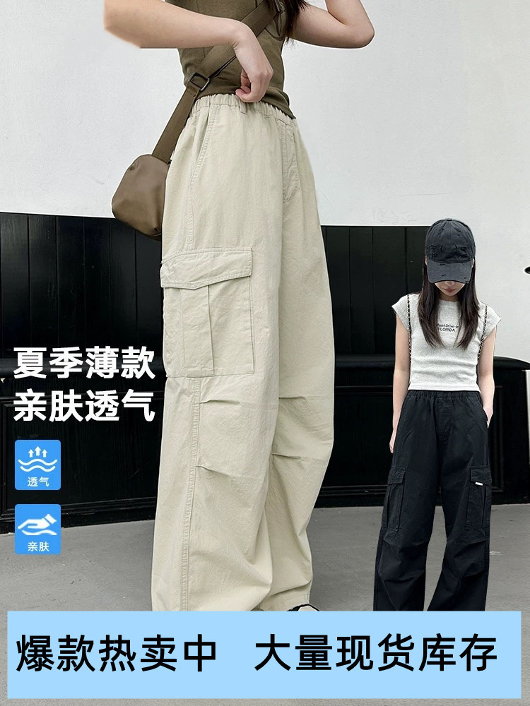 Брюки для девочек, лето 2024, новый стиль, молодежные повседневные свободные брюки-карго для девочек, тонкие спортивные брюки