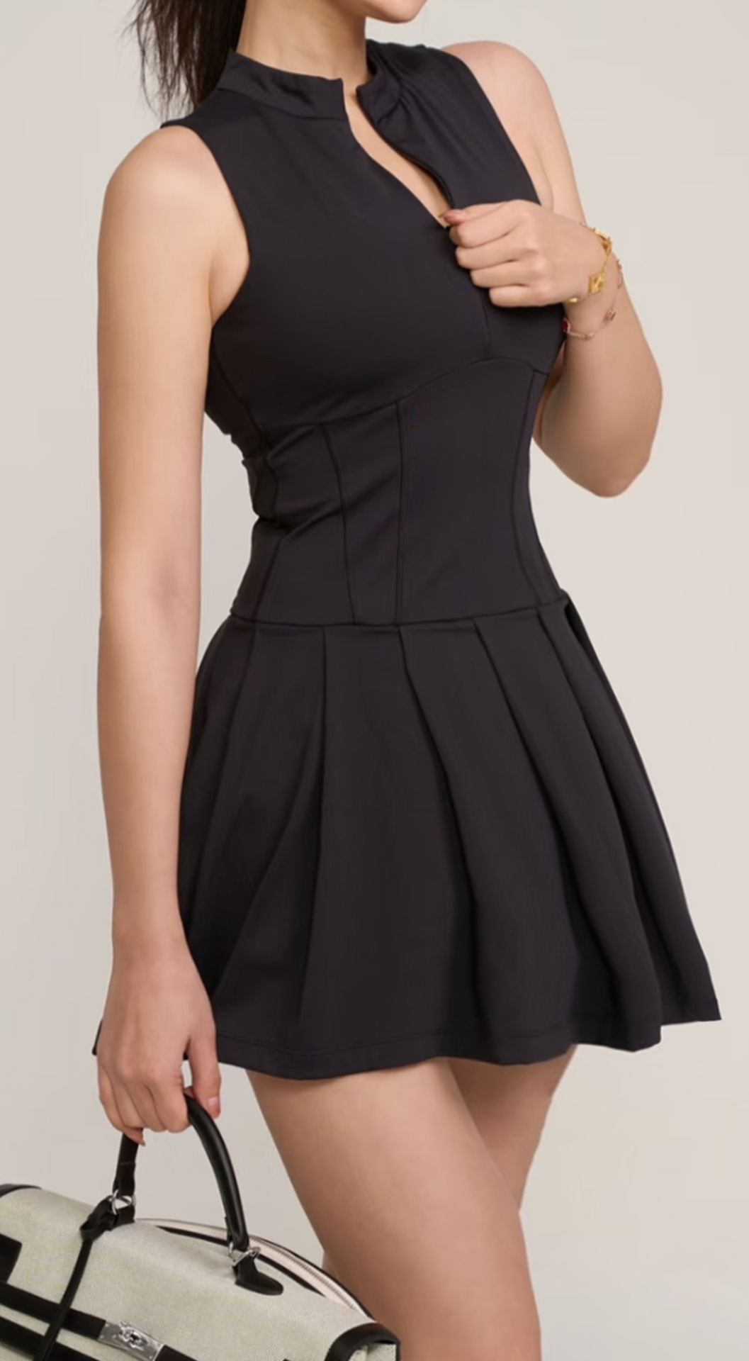 Маленькое теннисное платье с воротником-стойкой, защита от воздействия, рабочая одежда, эластичная, быстросохнущая спортивная юбка, встроенные леггинсы, теннисная юбка с нагрудной подкладкой.