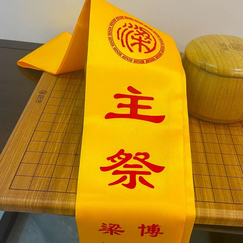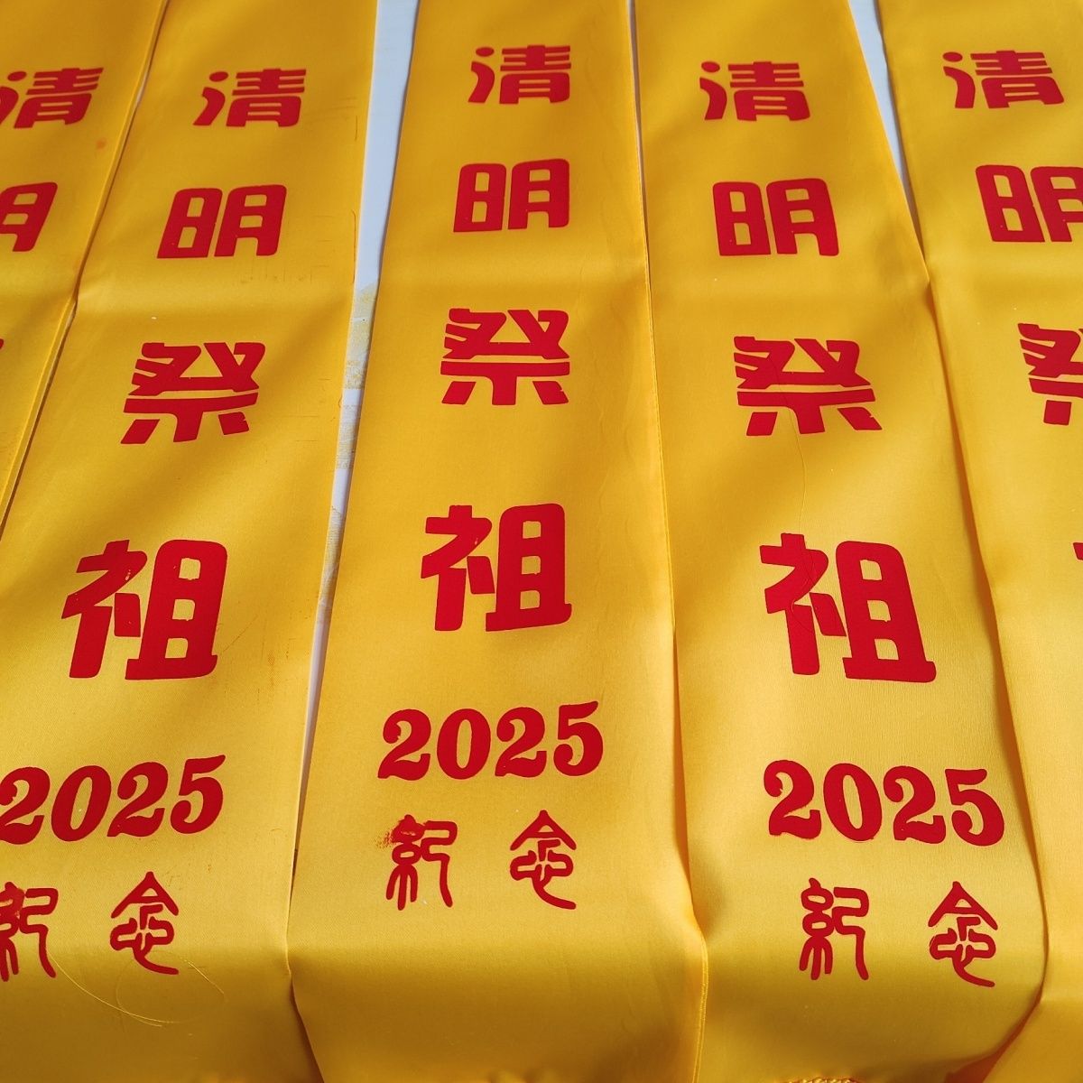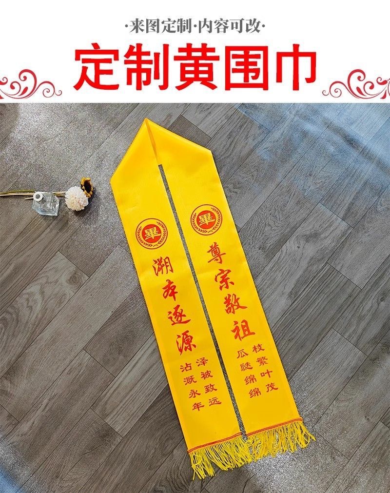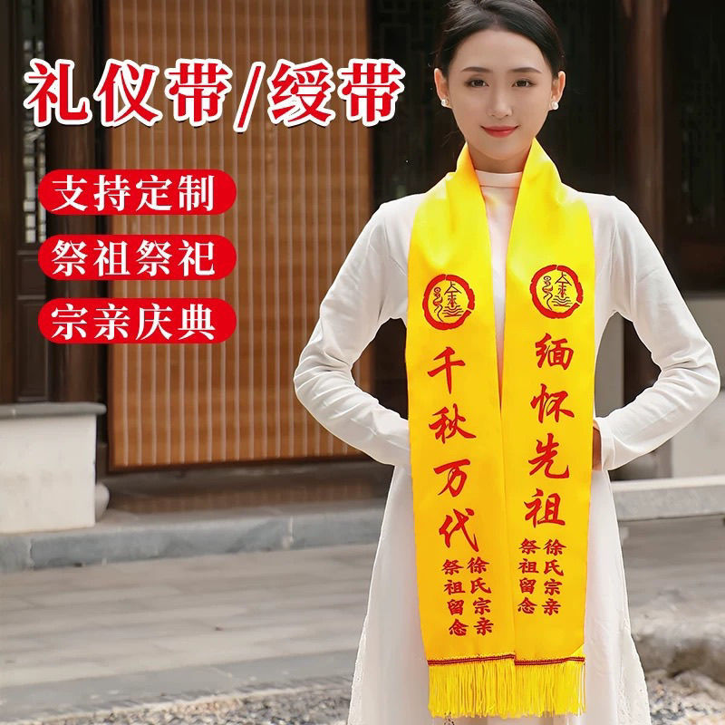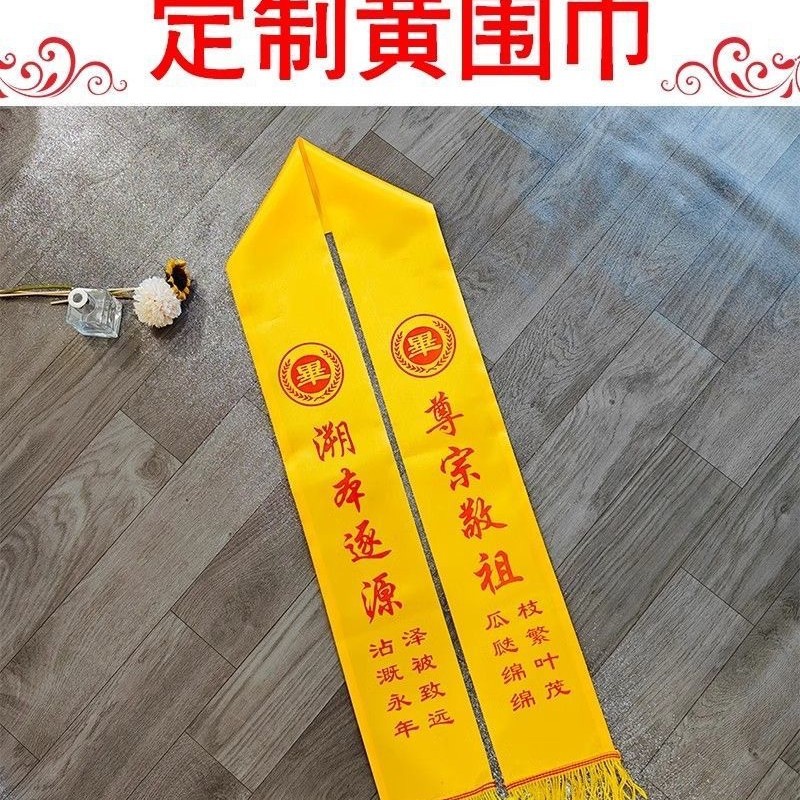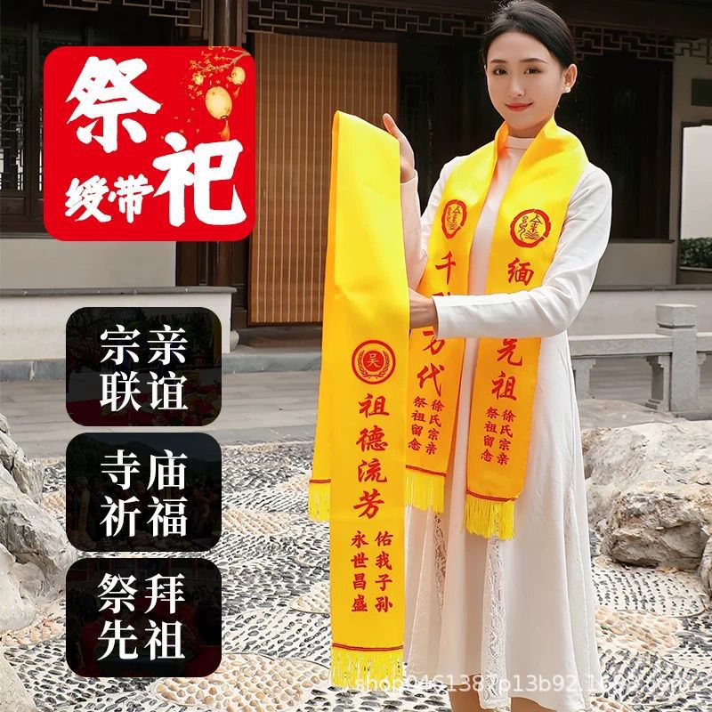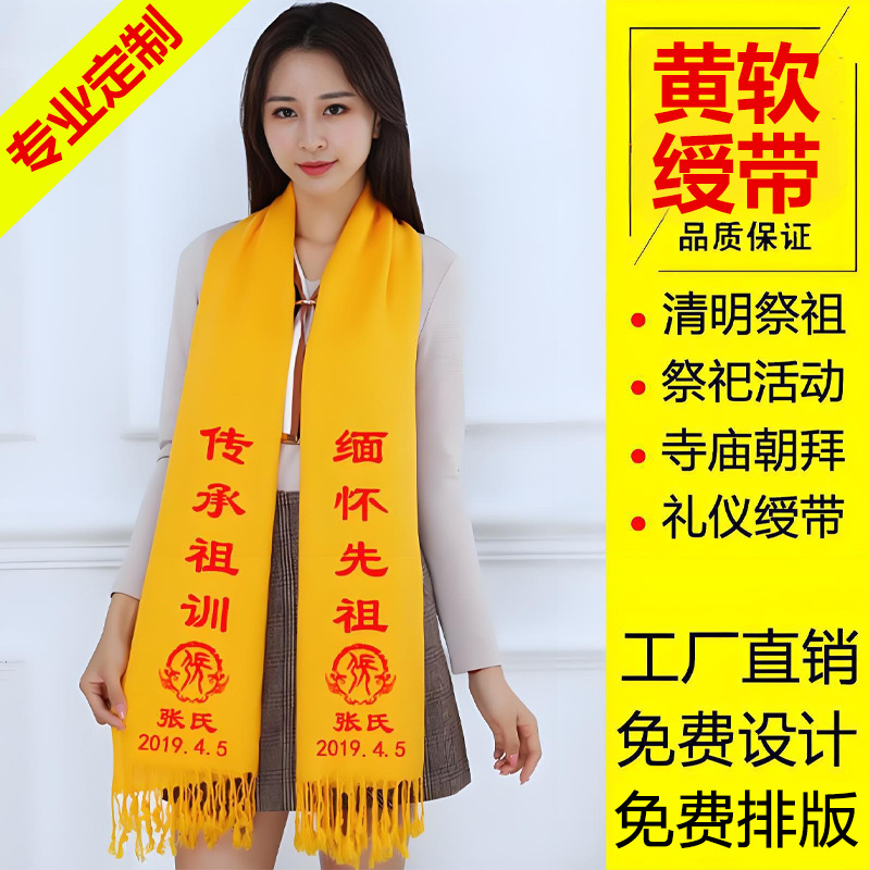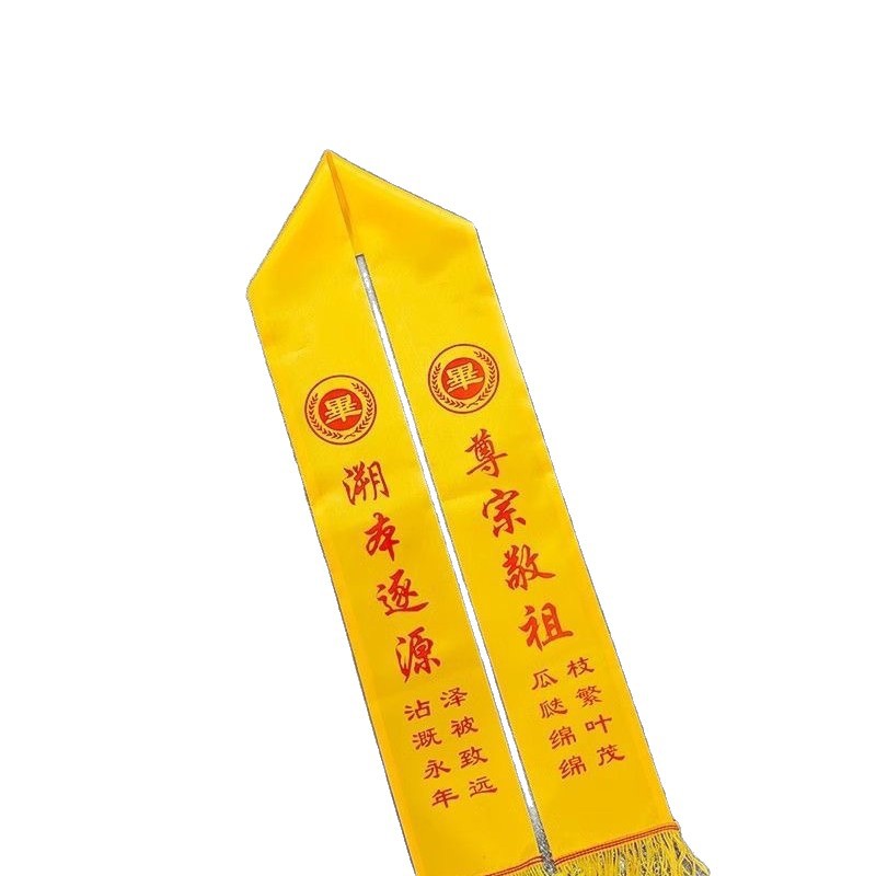 Желтая атласная лента для поклонения предкам на фестивале Цинмин, лента с принтом логотипа, семейная ассоциация, церемония поклонения