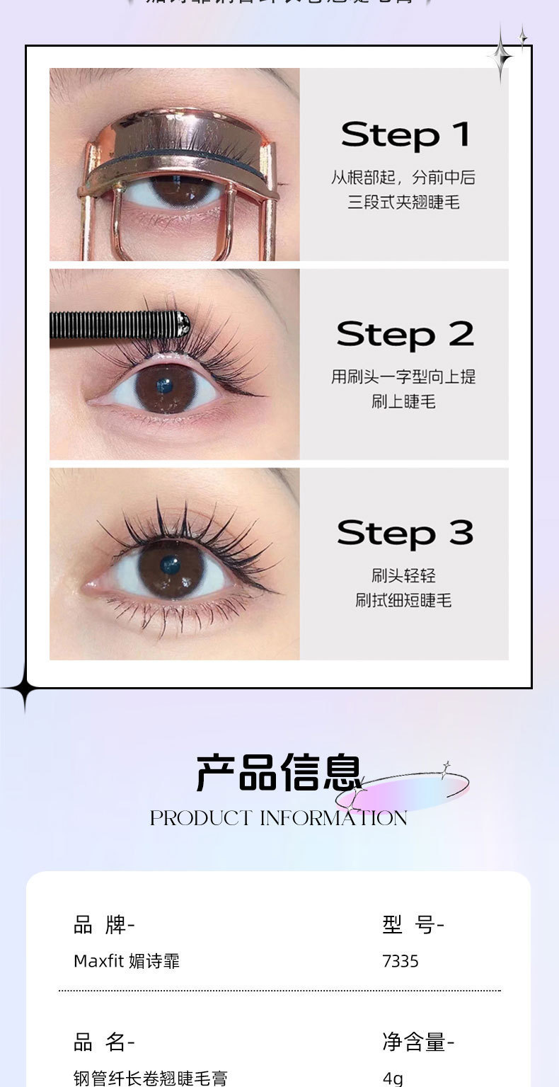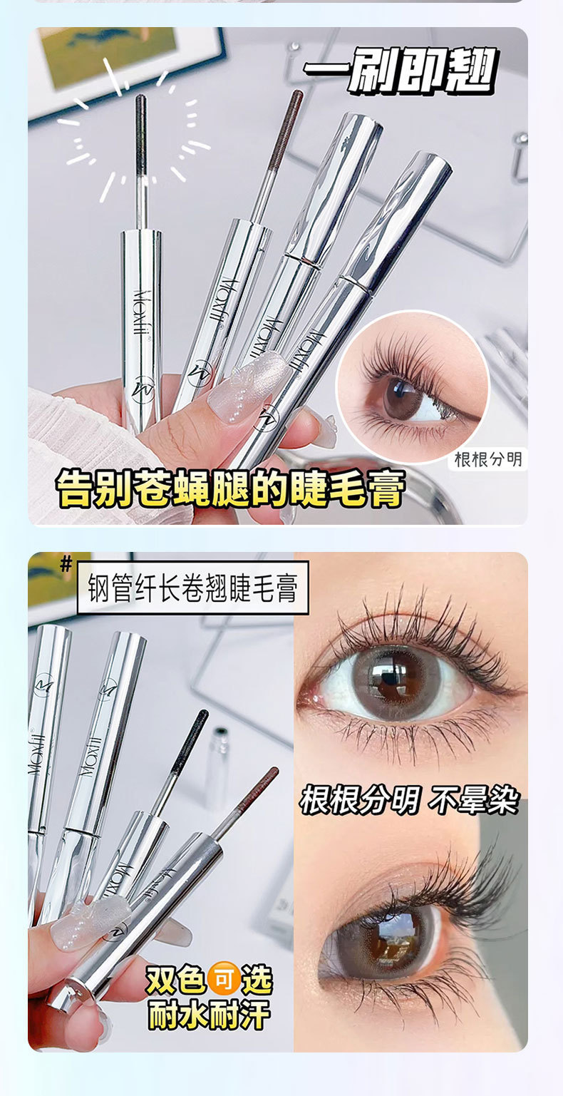Водонепроницаемая, устойчивая к поту, долговечная, несъемная стальная трубка, длинная и изогнутая тушь, тушь натурального цвета, Meishifei