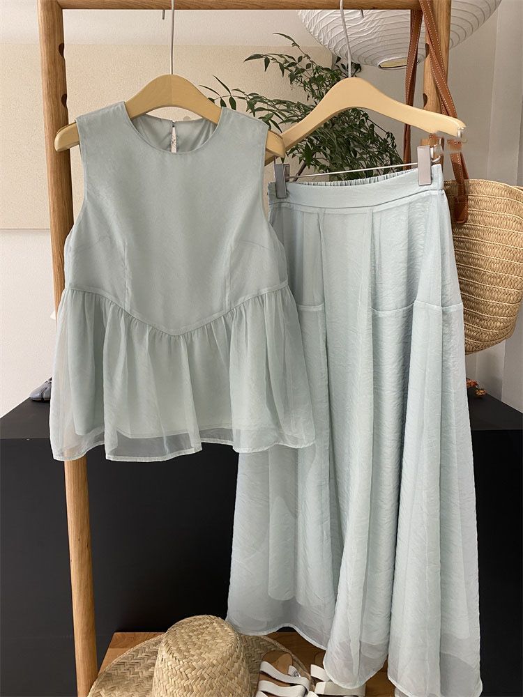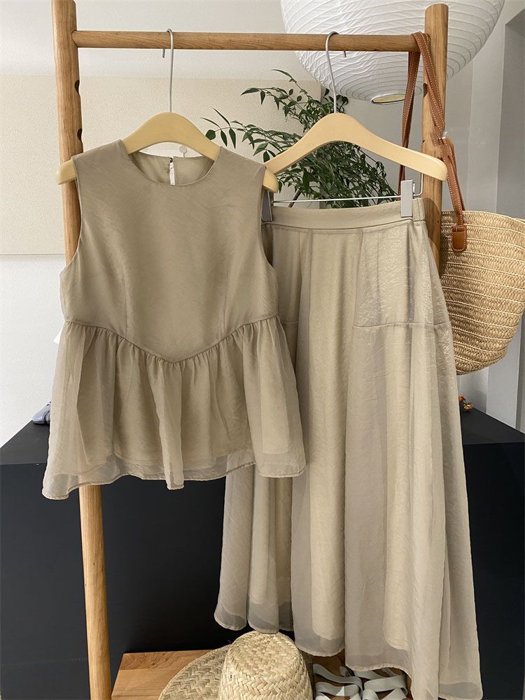 [Комплект из двух предметов] Светло-зеленый топ + юбка; [Комплект из двух предметов] Топ + юбка абрикосового цвета; [Комплект из двух предметов] Светло-коричневый топ + юбка; [Подкладка] Примечания к заказу (сверху) цвет; [На подкладке] Примечания по цвету заказа (юбка)
