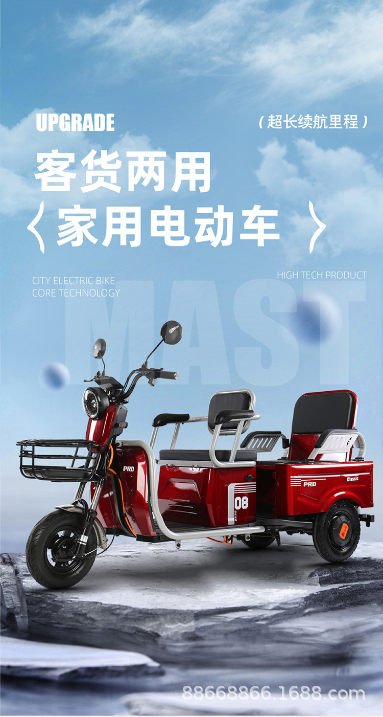 Электрический трехколесный велосипед для взрослых, скутер для пожилых людей, небольшой бытовой пассажирский и грузовой электромобиль, женский детский транспортный электромобиль.
