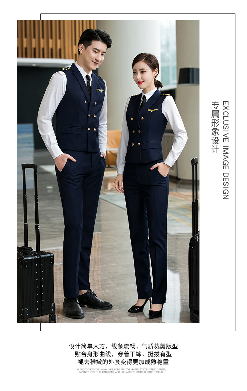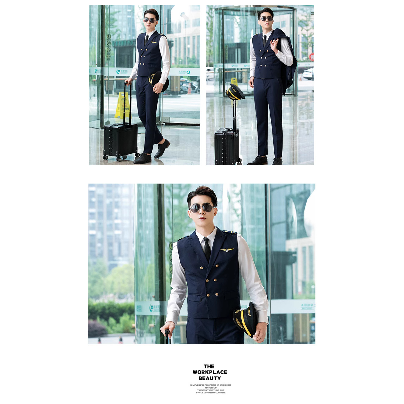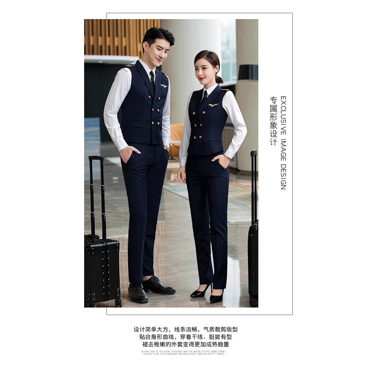 Мужской и женский синий жилет деловой костюм стюардессы капитана рабочая одежда для поездок на работу стройный костюм