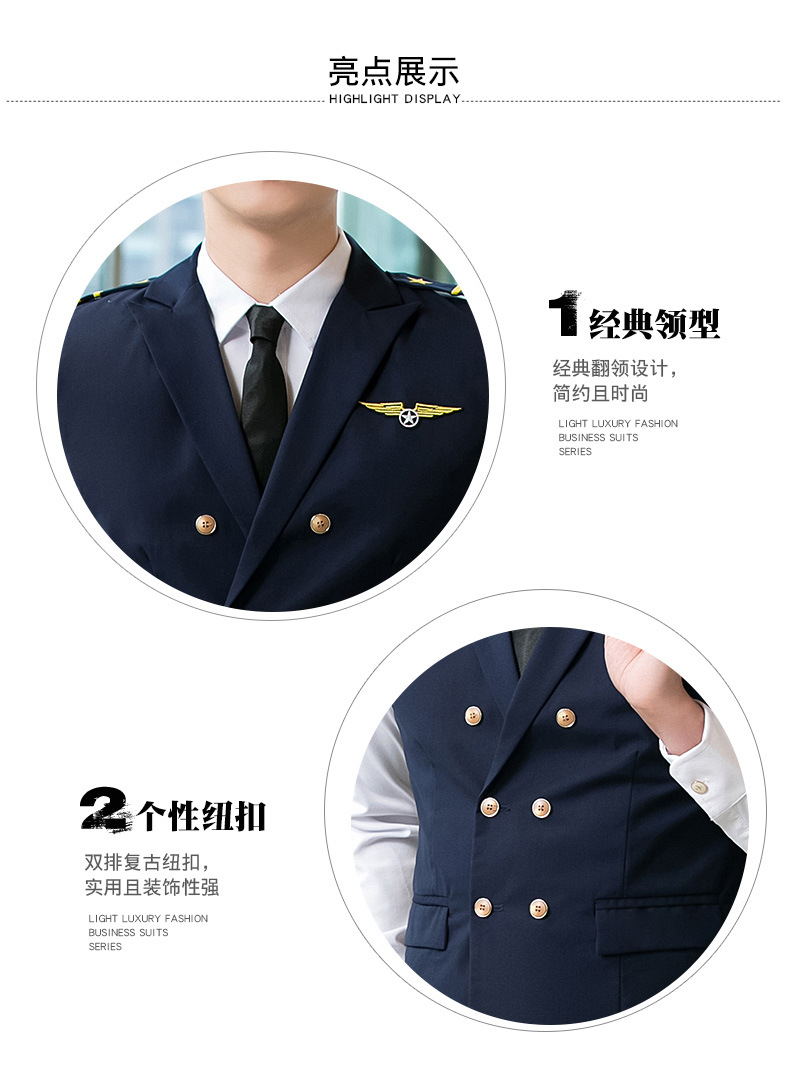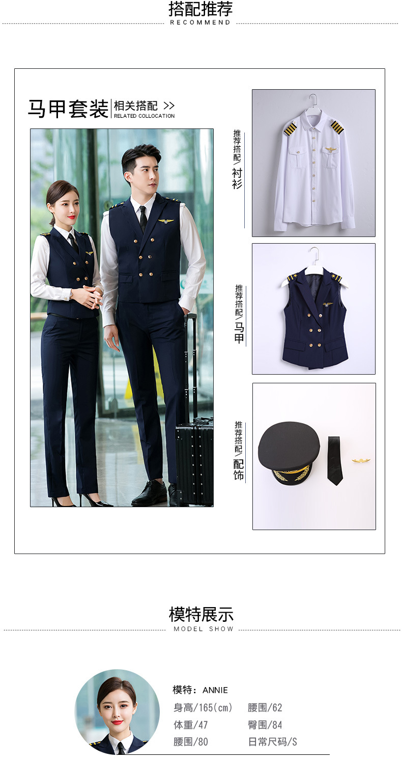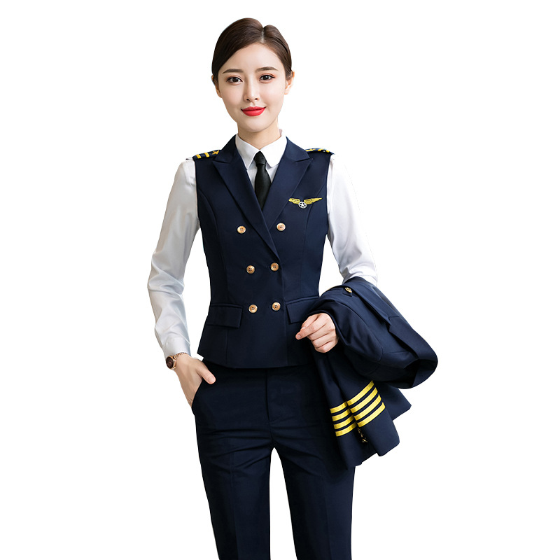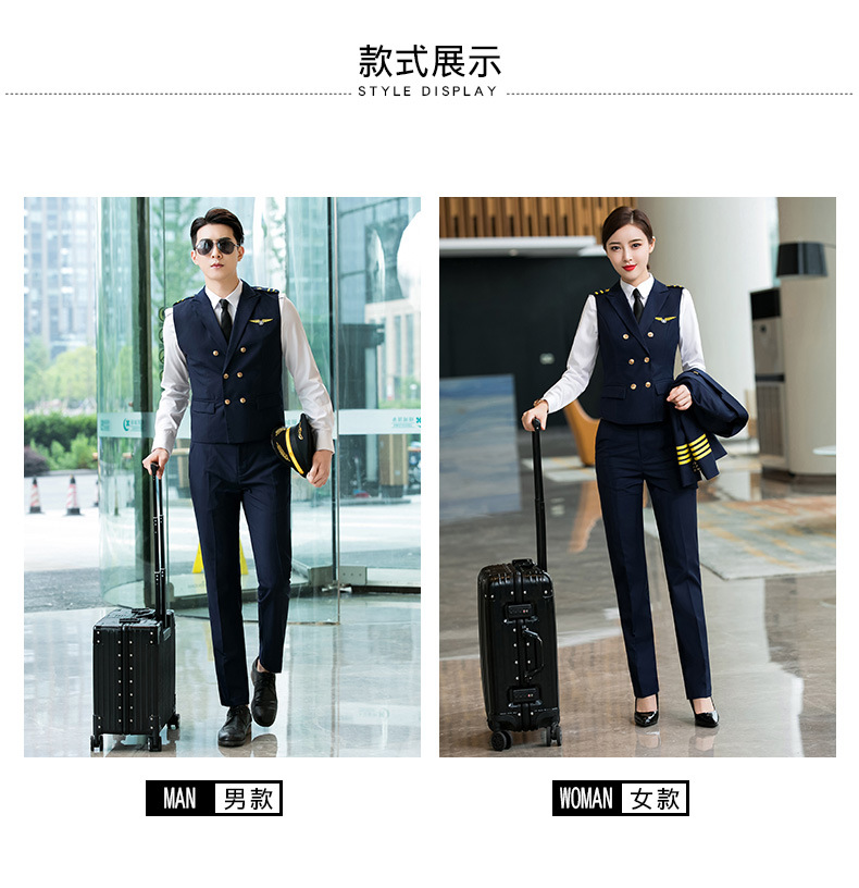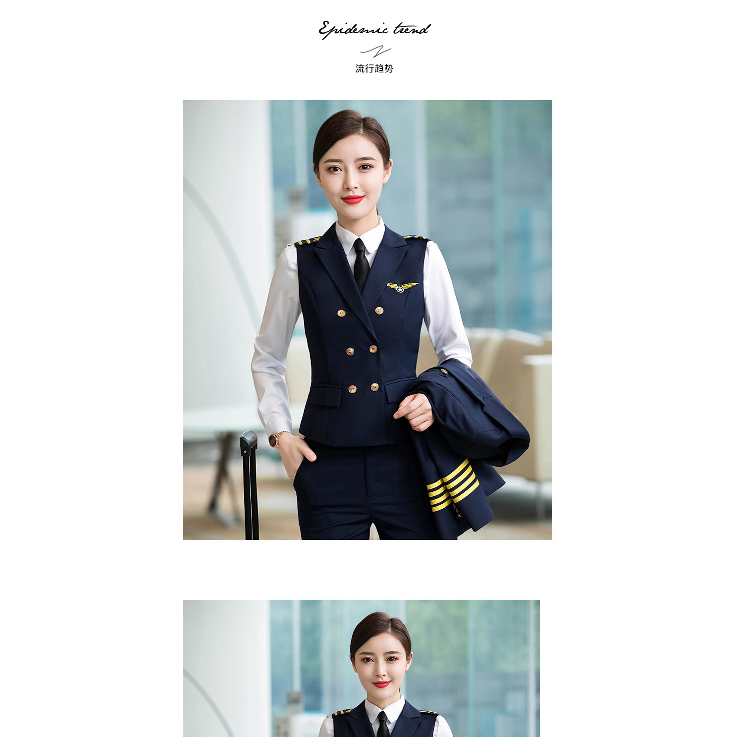 Мужской и женский синий жилет деловой костюм стюардессы капитана рабочая одежда для поездок на работу стройный костюм