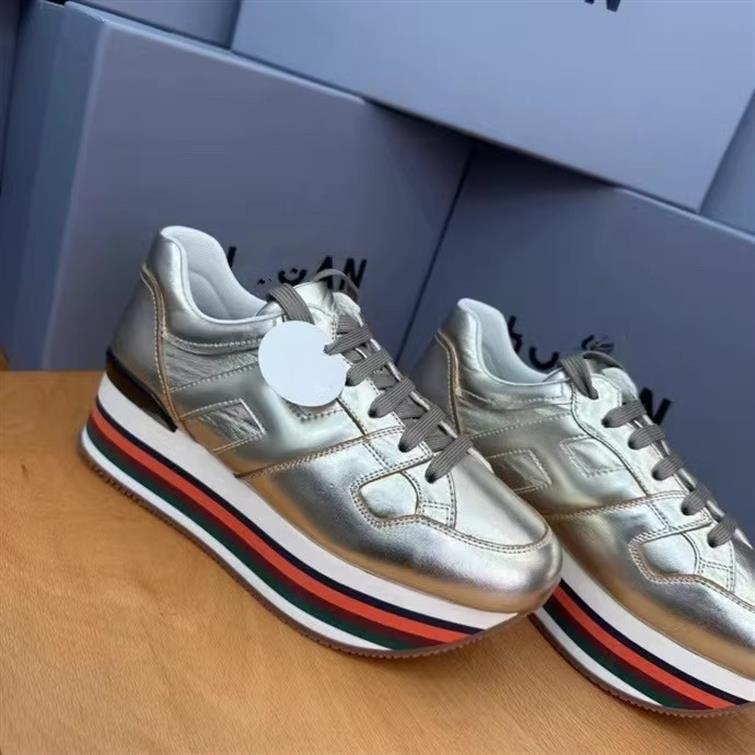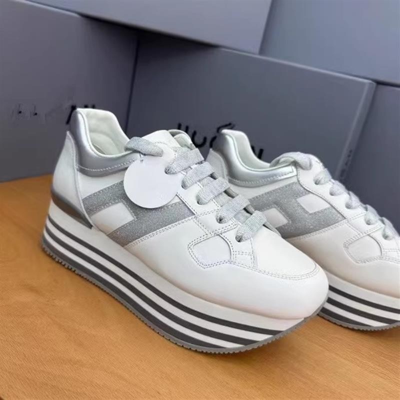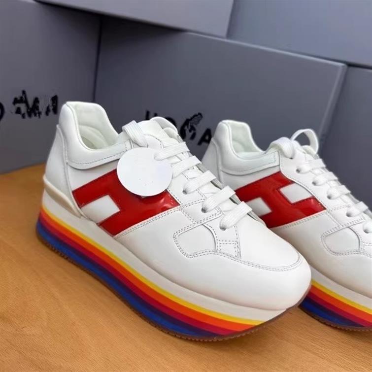 Женские кроссовки на платформе на толстой подошве 2025 Yang Mi, туфли из воловьей кожи в одном стиле, увеличивающие рост, модные белые туфли 7cm года с цветными блоками