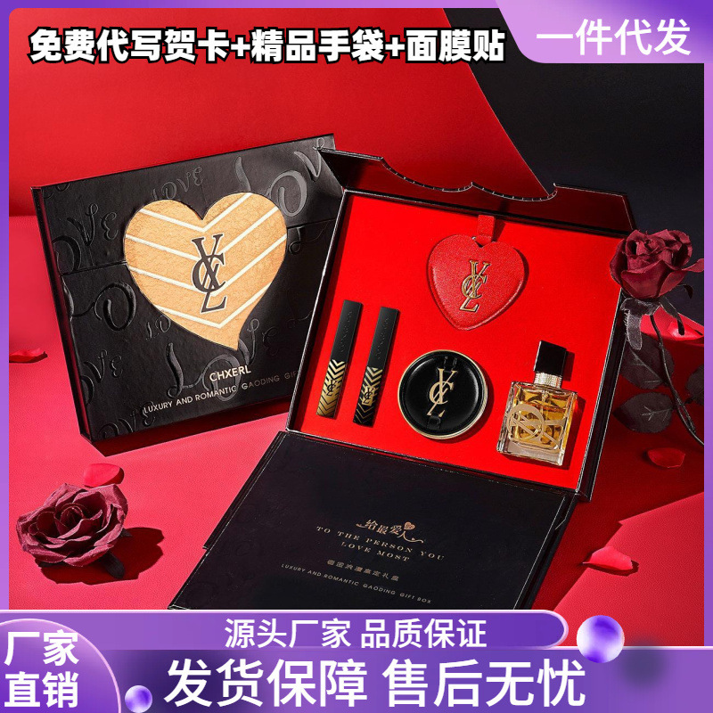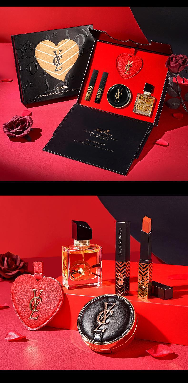 В наличии подарочный набор Chanel из роскошных золотых романтических духов в подарочной упаковке ко Дню святого Валентина, набор из элитных духов и помады для девушки.