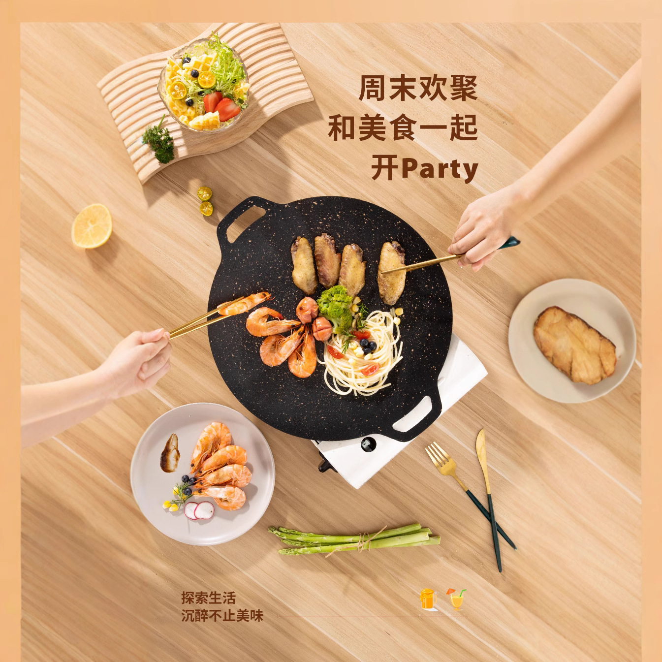 ✅ Уличная походная бытовая сковорода-гриль для барбекю, сковорода в корейском стиле, круглая портативная универсальная сковорода для яиц, железная пластина, барбекю с двумя ручками