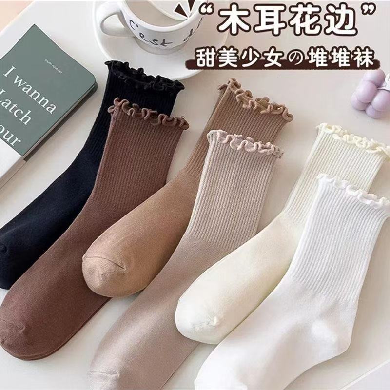 Носки в японском стиле, белые кружевные носки для женщин, летние модные универсальные женские носки JK средней длины на весну и осень с рюшами по краям