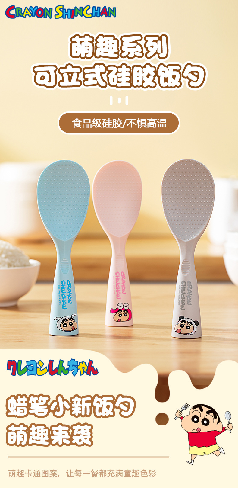 Crayon Shinchan Поданная силиконовая рисовая ложка пищевая стойка не липкая рисовая лопата ложка