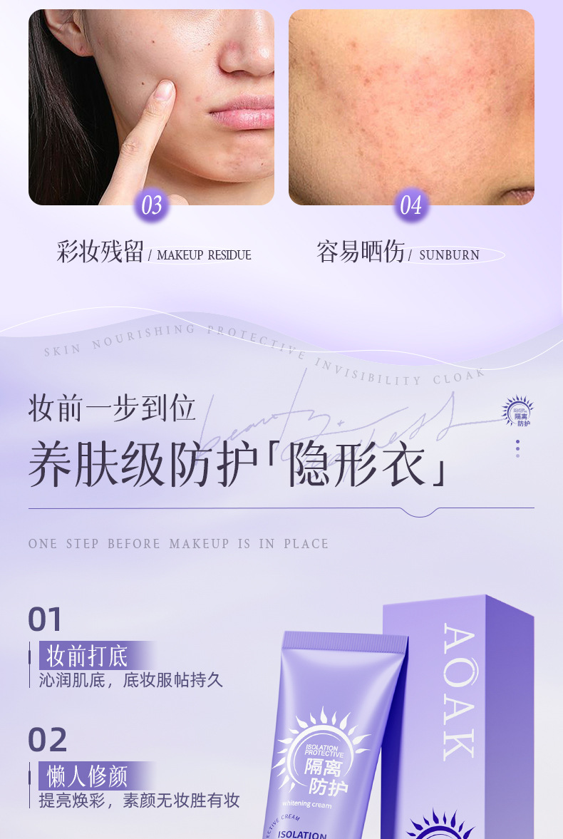 Крем AOAK: Отбеливающий, Защитный, Изолирующий, Корректирующий — 3-в-1. Осветляющий праймер, Увлажняющий и Питательный. Оптом.