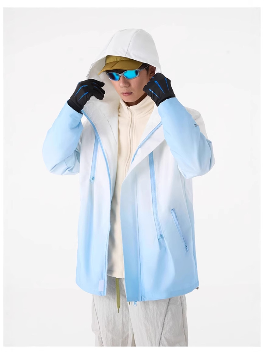 Новинка весны и осени 2025, двухцветная мужская и женская спортивная ветрозащитная куртка премиум-класса с градиентом для альпинизма