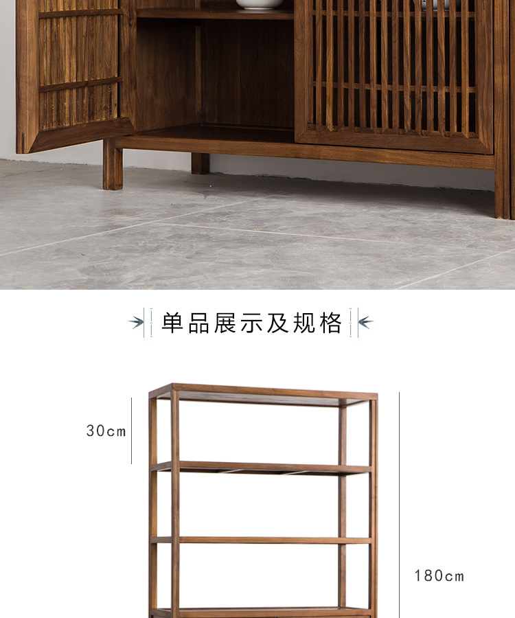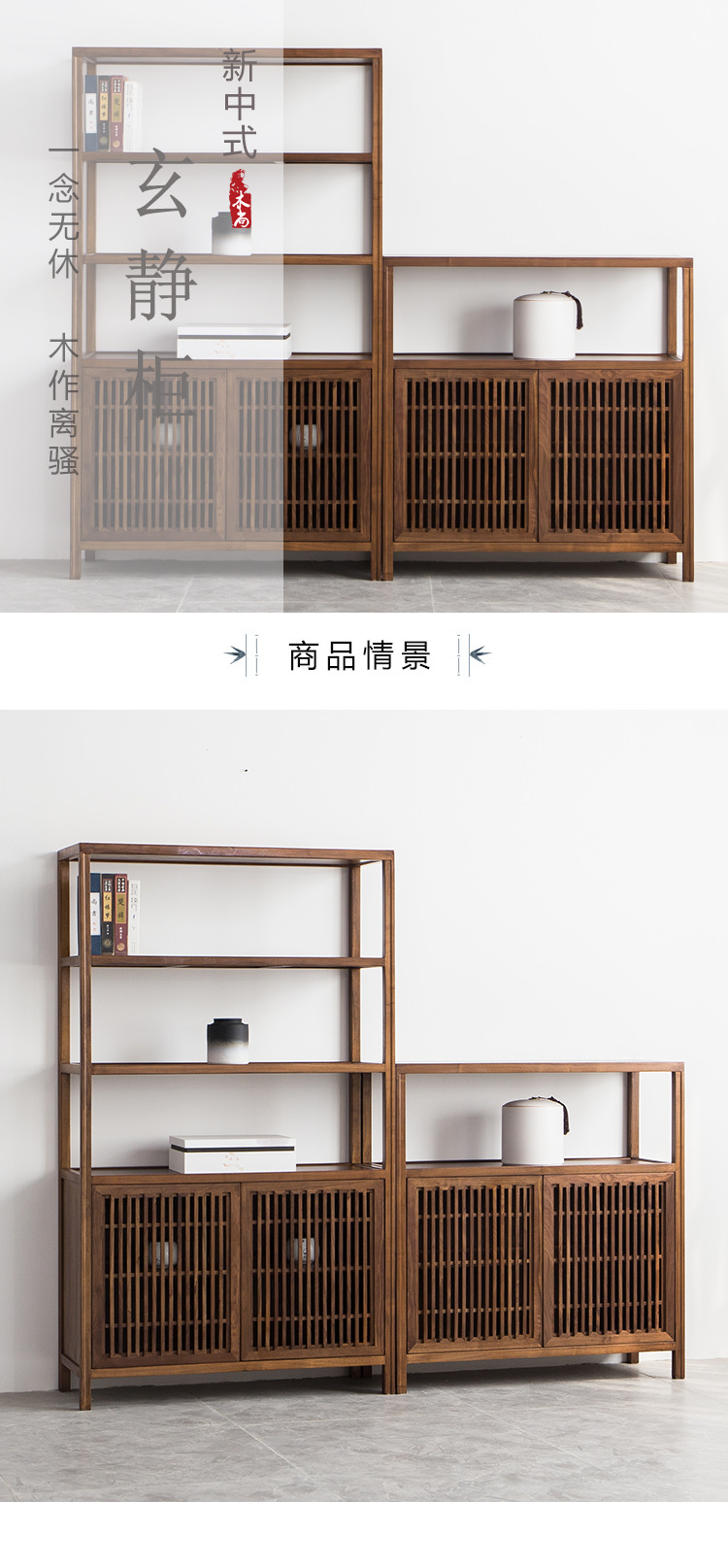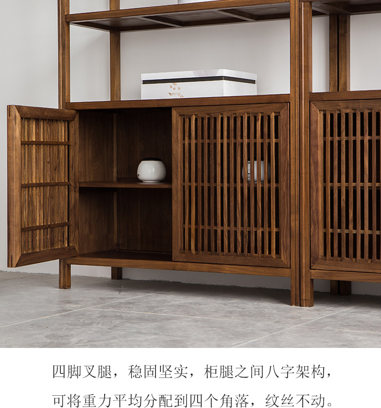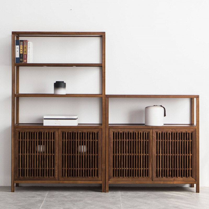 Новый китайский стиль, полка Bogu из цельного дерева, книжный шкаф, низкий шкаф, витрина, чайная полка, стеллаж для хранения из черного ореха, мебель в стиле дзен
