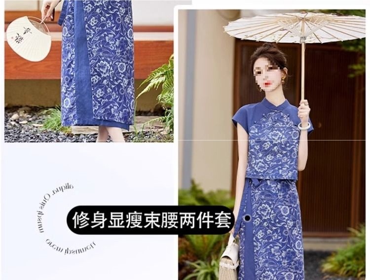 Улучшенный стиль, юбка в китайском стиле, женская летняя новая стильная юбка в китайском стиле из хлопка и льна с цветочным принтом, костюм