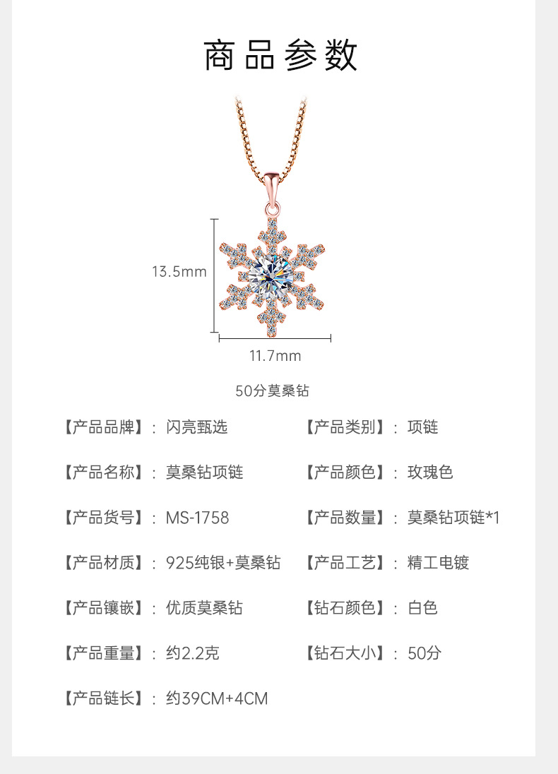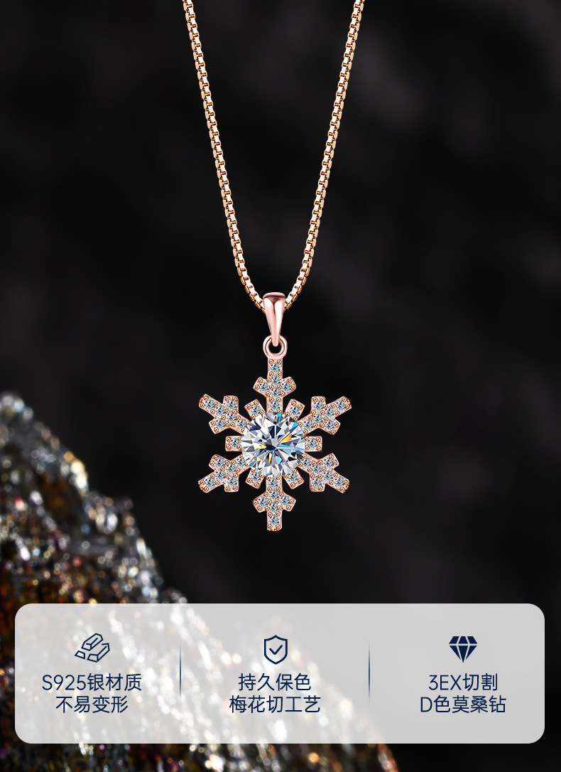 TikTok Live популярное микроинкрустированное бриллиантом муассанитовое кулон-снежинка на ключице, универсальное очаровательное трансграничное рождественское ожерелье