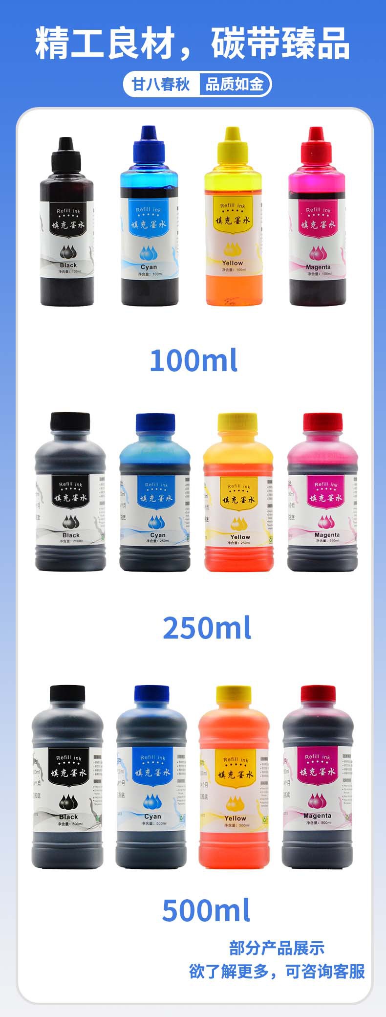 [Четыре цвета-100 мл] 31000 страниц-универсальные чернила-4 упаковки; [Черный-100 мл] 5500 страниц — универсальные чернила — 1 упаковка; [Голубой-100 мл] 8500 страниц — универсальные чернила — 1 упаковка; [Желтый-100 мл] 8500 страниц — универсальные чернила — 1 упаковка; [Красный-100 мл] 8500 страниц — универсальные чернила — 1 упаковка; [Четыре цвета — 250 мл] 77 000 страниц — универсальные чернила — 4 упаковки; [Черный-250 мл] 14000 страниц — универсальные чернила — 1 упаковка; [Голубой-250 мл] 21000 страниц — универсальные чернила — 1 упаковка; [Желтый-250 мл] 21000 страниц — универсальные чернила — 1 упаковка; [Красный-250 мл] 21000 страниц — универсальные чернила — 1 упаковка; [Четыре цвета-500 мл] 154000 страниц-универсальные чернила-4 шт.; [Черный-500 мл] 28000 страниц — универсальные чернила — 1 упаковка; [Голубой-500 мл] 42000 страниц — универсальные чернила — 1 упаковка; [Желтый-500 мл] 42000 страниц — универсальные чернила — 1 упаковка; [Красный-500 мл] 42000 страниц — универсальные чернила — 1 упаковка
