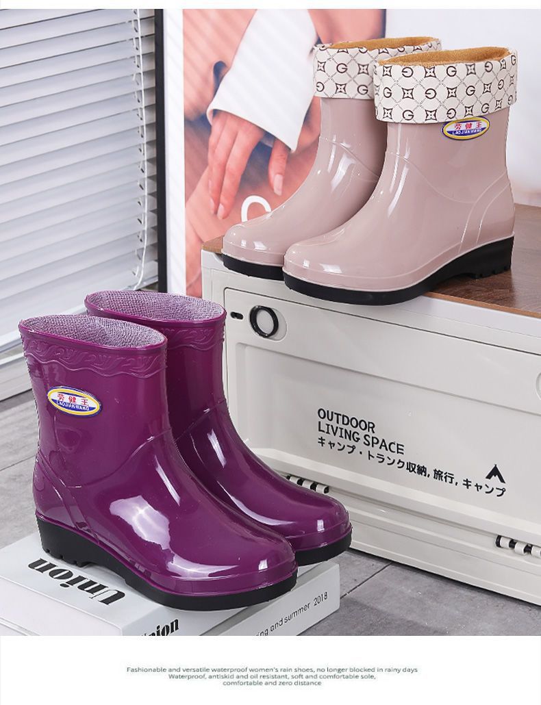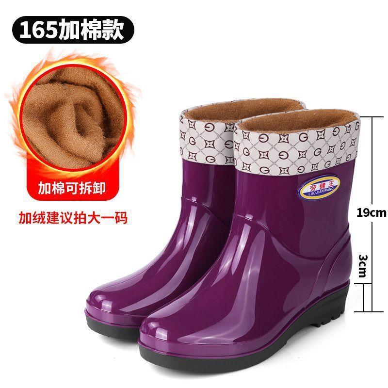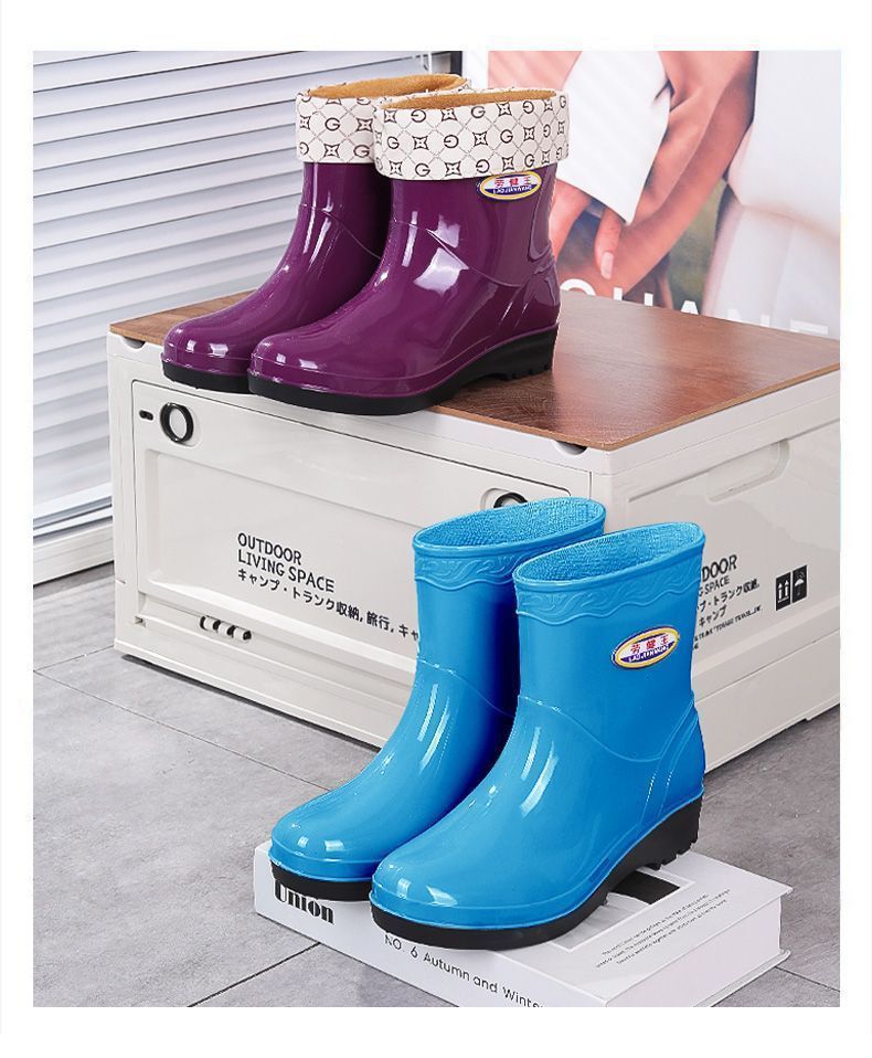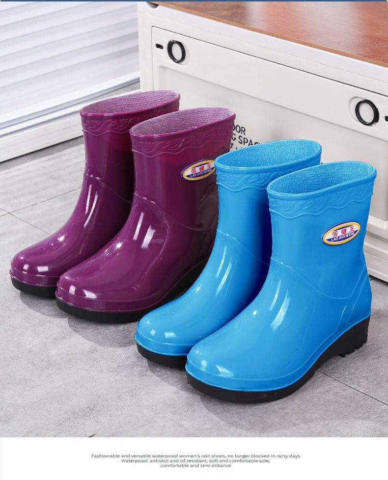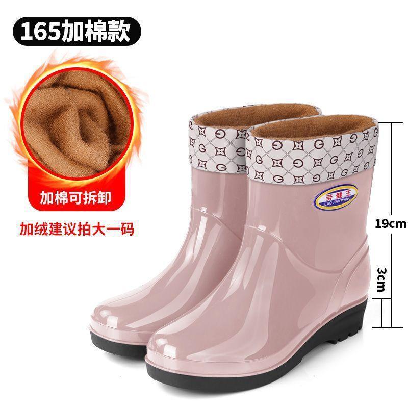 Дождевые сапоги, низкие, удобные и толстые, всесезонные женские резиновые туфли для воды, зимние высокие противоскользящие хрустальные тапочки на толстой подошве до середины икры.