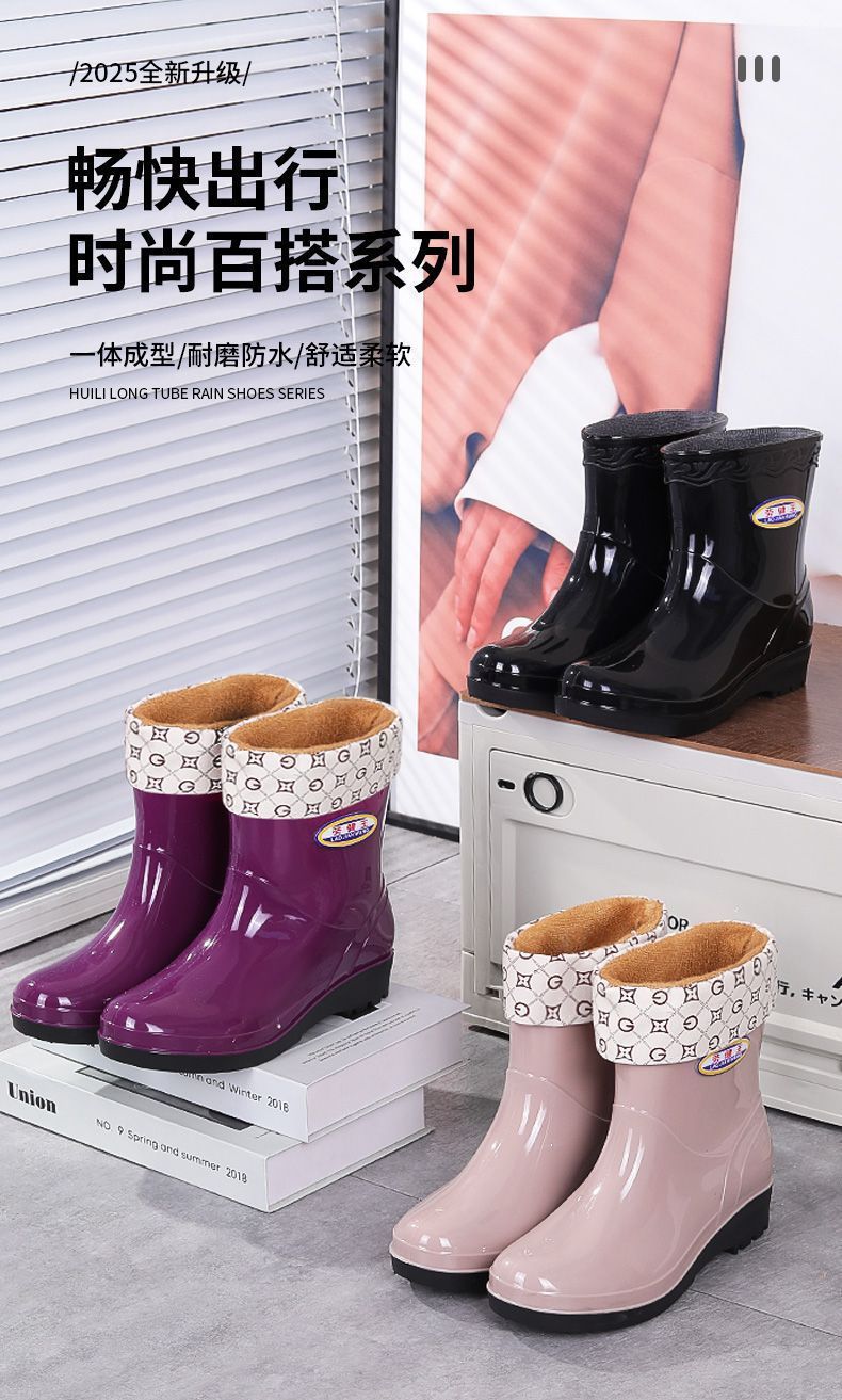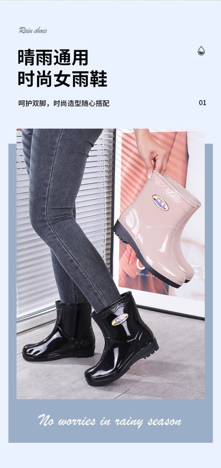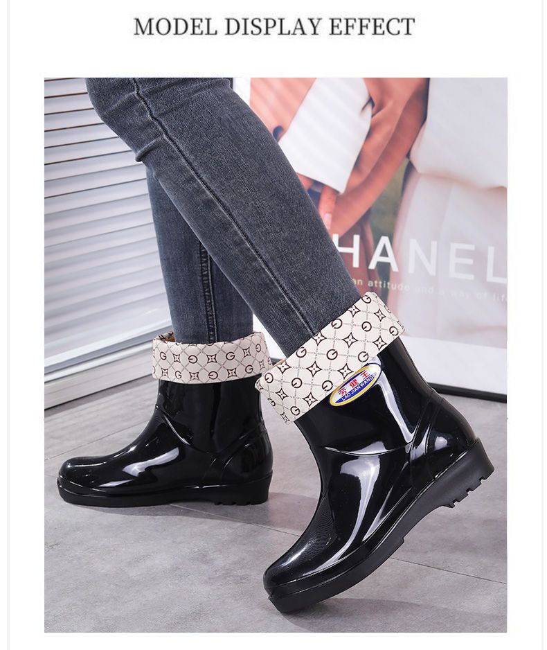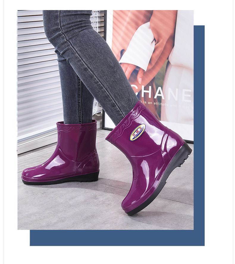 Дождевые сапоги, низкие, удобные и толстые, всесезонные женские резиновые туфли для воды, зимние высокие противоскользящие хрустальные тапочки на толстой подошве до середины икры.
