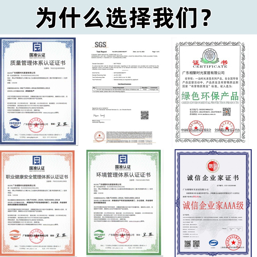 核心技术层面,公司拥有26项国家专利认证,独创静音弹簧系统将伴侣干扰度降低至15分贝以下,冰丝抗菌面料通过SGS检测认证,抗菌率高达99.8%,结合3D透气围边技术形成五维空气循环体系。品质管控严格执行ISO9001质量管理体系与ISO14001环境管理体系标准,每张床垫历经12道质检工序,8项物理性能测试,确保10年结构质保。