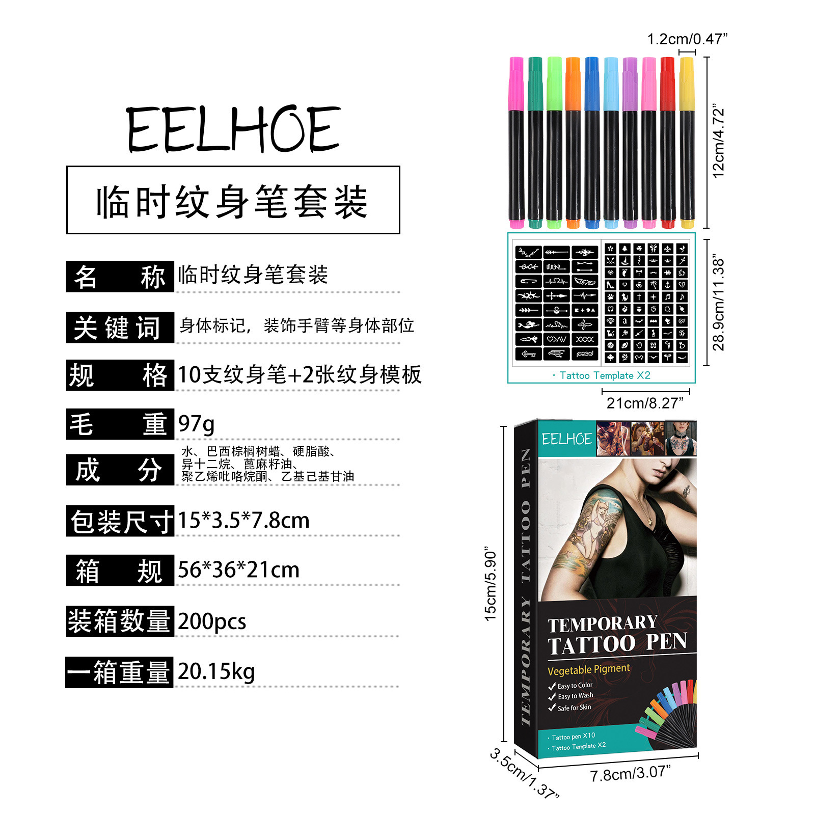 10 ручек для татуировок + 2 шаблона для татуировок (только для экспортных продаж во внешней торговле, продажи на внутреннем рынке запрещены, покупка эквивалентна отказу от ответственности по умолчанию)