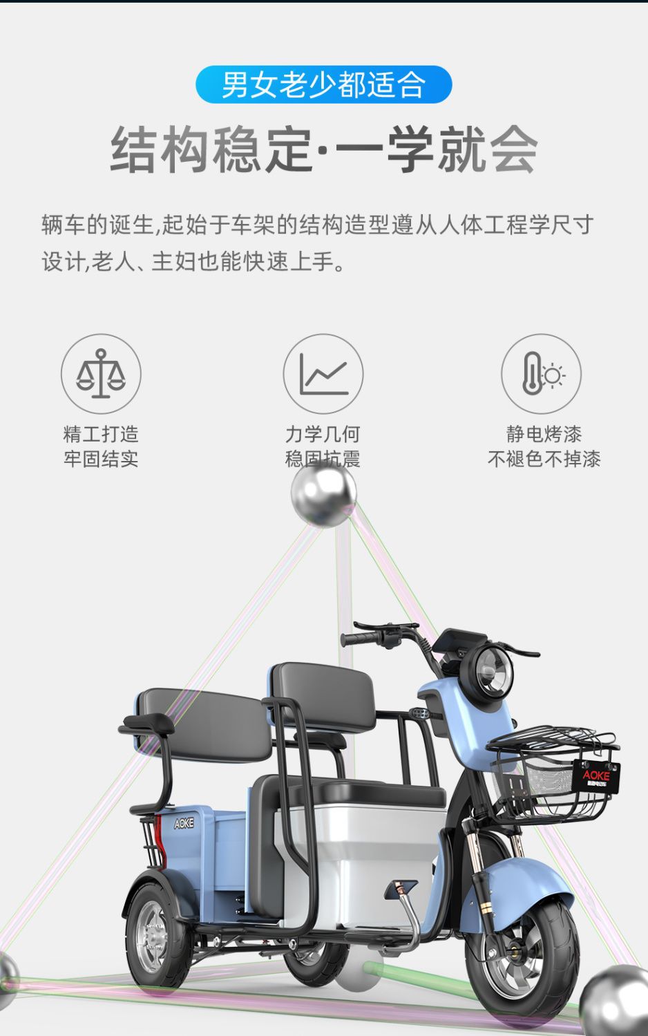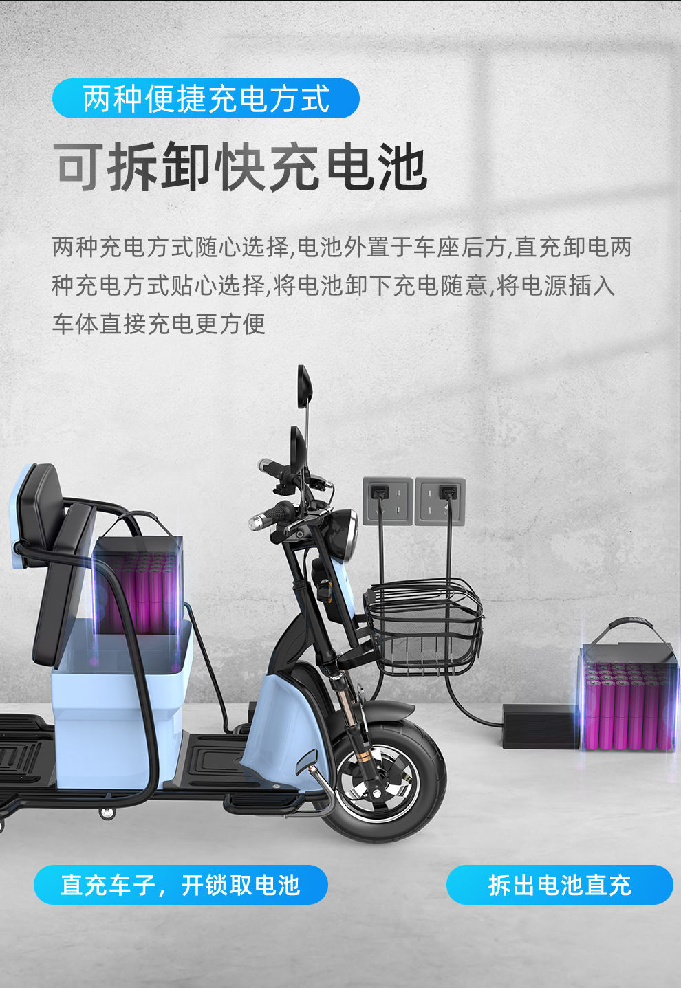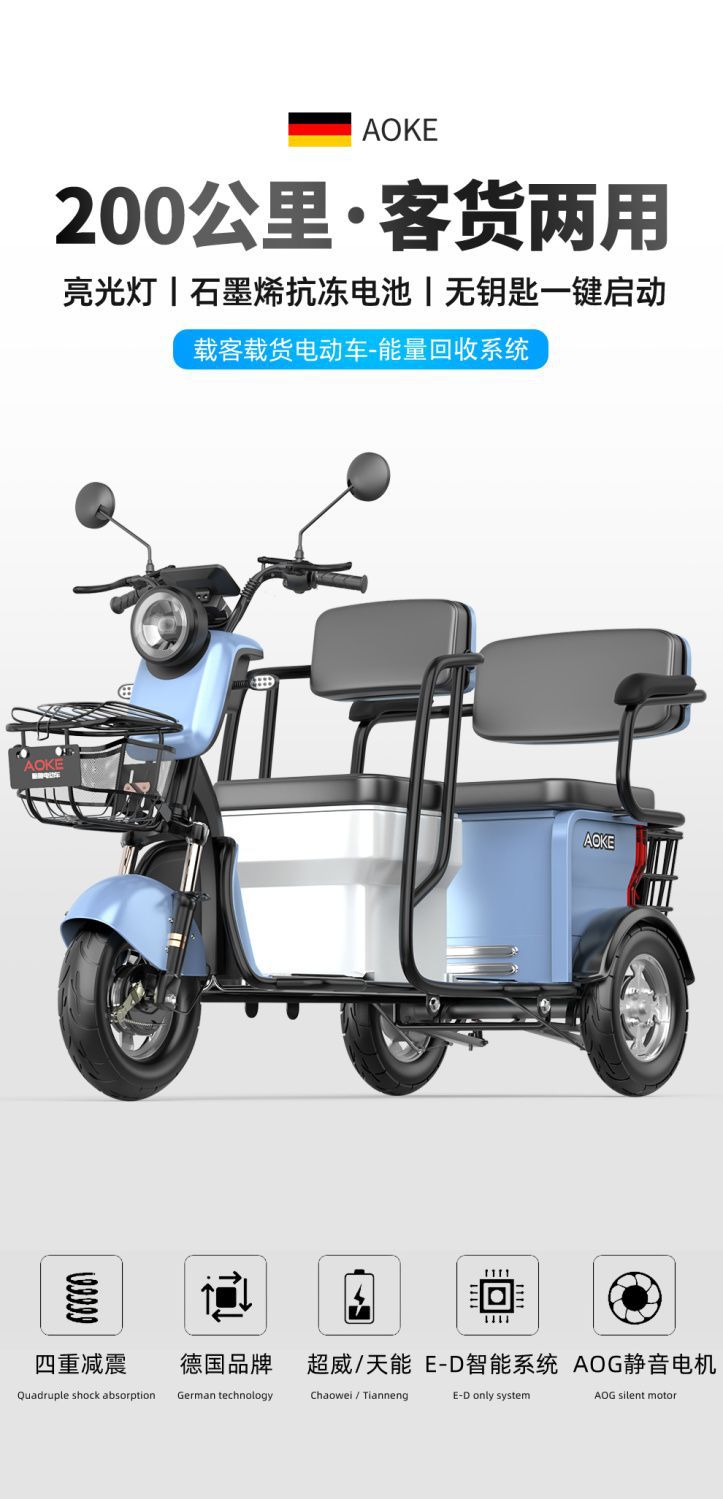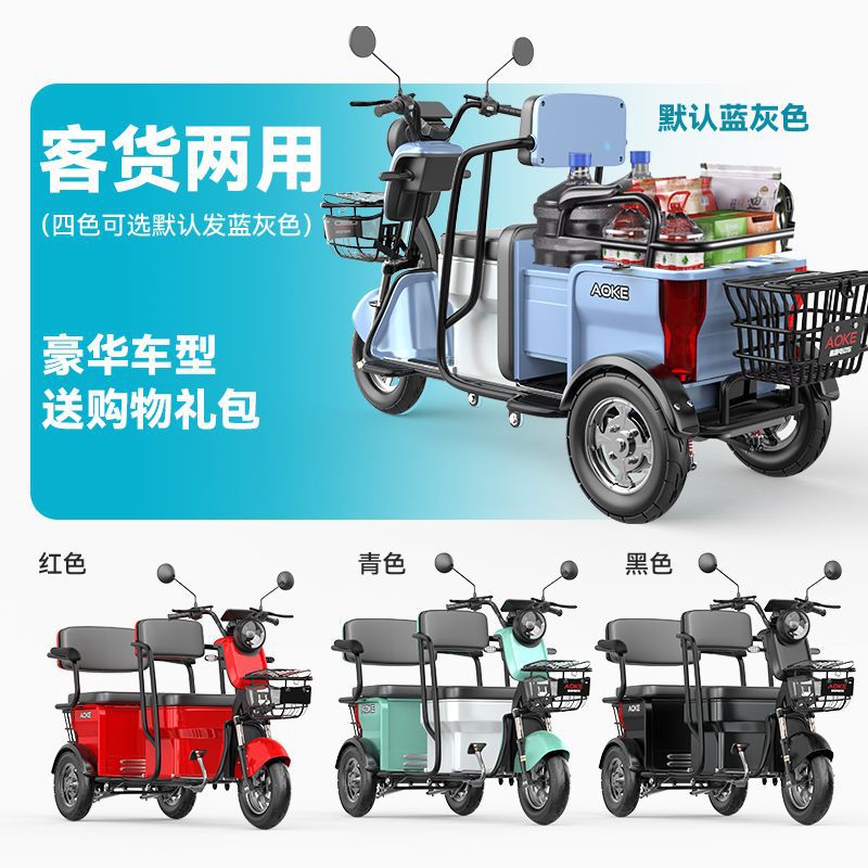 Электротрицикл для пассажиров и грузов двойного назначения, бытовой для подвоза детей, мощный новый аккумуляторный автомобиль для пожилых людей, трехколесный для пожилых людей.