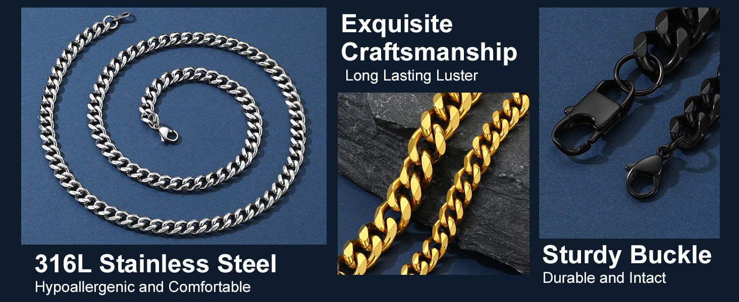 Кубинская цепочка из нержавеющей стали ChainsPro для мужчин, ожерелье-цепочка Miami Cuban Link 3/6/9/12 мм