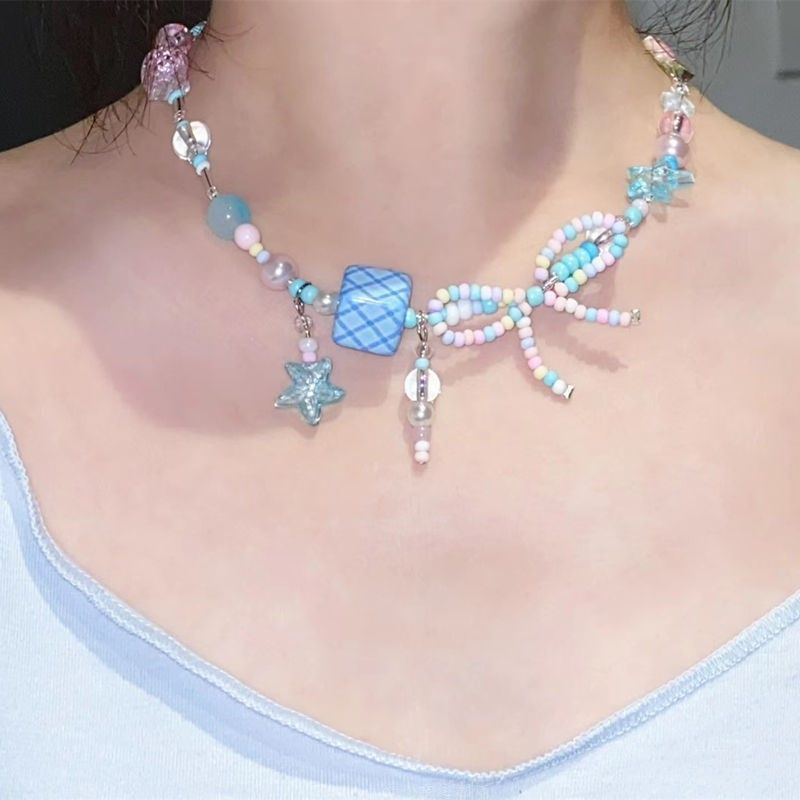 Весенняя цепочка на ключицу с бантом и цветком, женское милое детское ожерелье из бисера, ожерелье для отдыха, фото, атмосфера, аксессуары для ожерелья