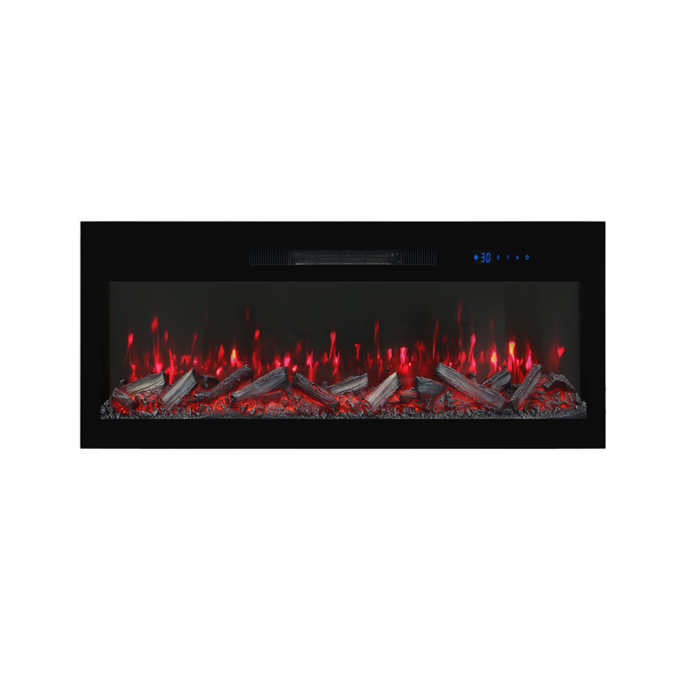 Встроенная электрическая каминная топка для гостиной виллы, большой мощности, с деревянной рамой и декоративной отделкой из имитированного камня, 1800 Вт.
