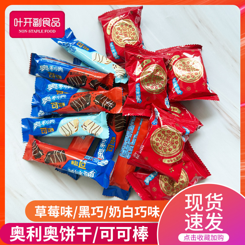 Oreo со вкусом свежей клубники (19,4 г на порцию); Батончики Oreo с темным какао (11,6 г на порцию); Батончик молочного белого шоколада Oreo (11,6 г на порцию); Пустая упаковочная коробка для печенья Oreo 1; Пустая упаковочная коробка Oreo Cocoa Bar 2